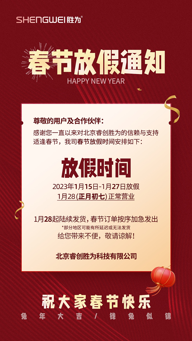 新春將近,在過(guò)年的這一年里,北京睿創(chuàng)勝為感謝你們?nèi)瓴浑x不棄的陪伴,2022年有了您的陪伴,我們非常充實(shí)、精彩。2023我們會(huì)更加努力!為您提供更優(yōu)質(zhì)的服務(wù)與產(chǎn)品。