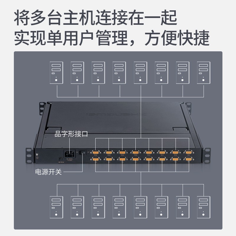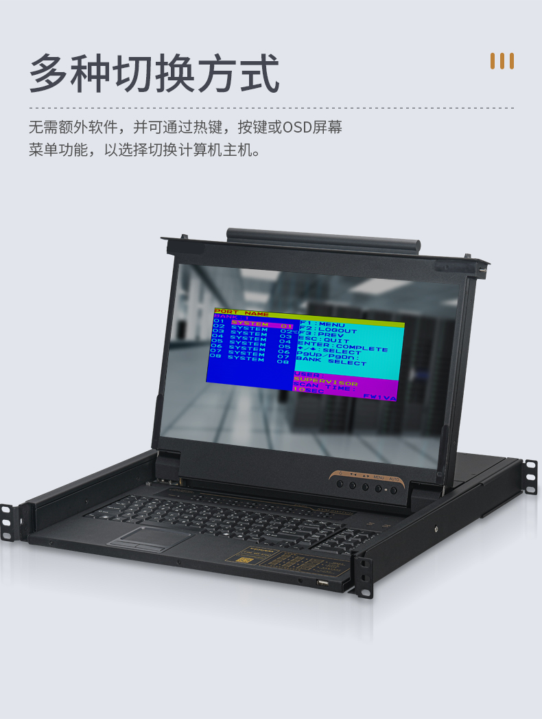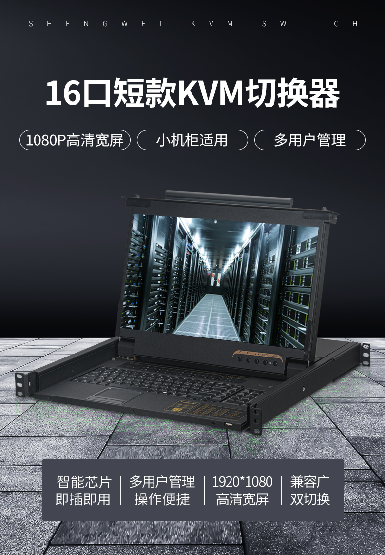 數(shù)字KVM切換器16口 17.3英寸高清寬屏LCD顯示器配VGA線 16進(jìn)一出機(jī)架式電腦轉(zhuǎn)換器 KS-2716L