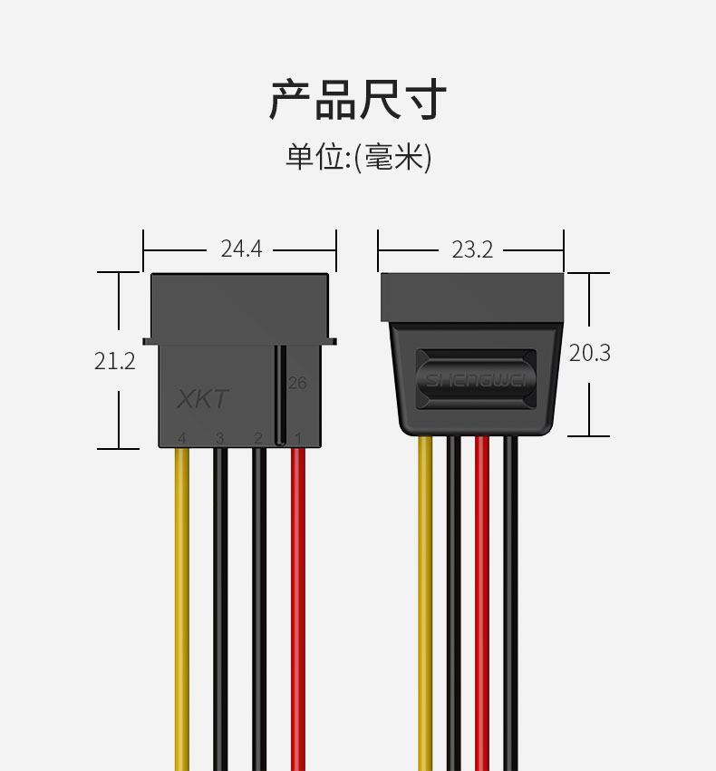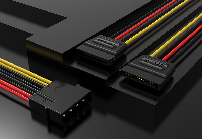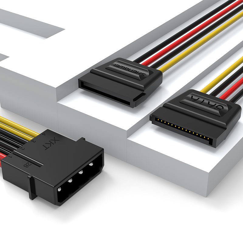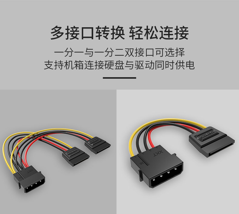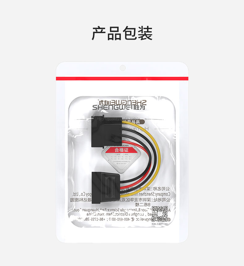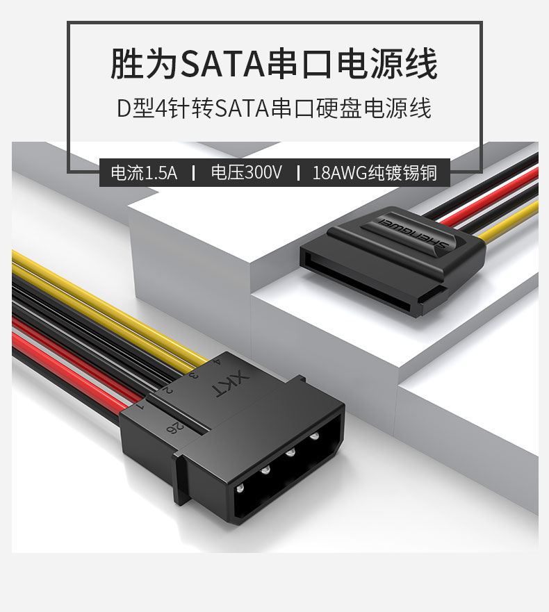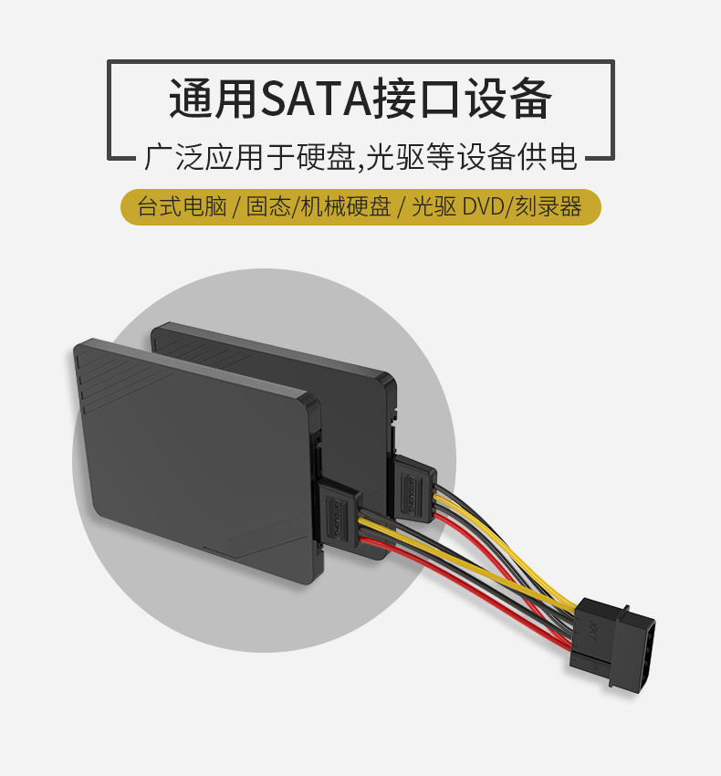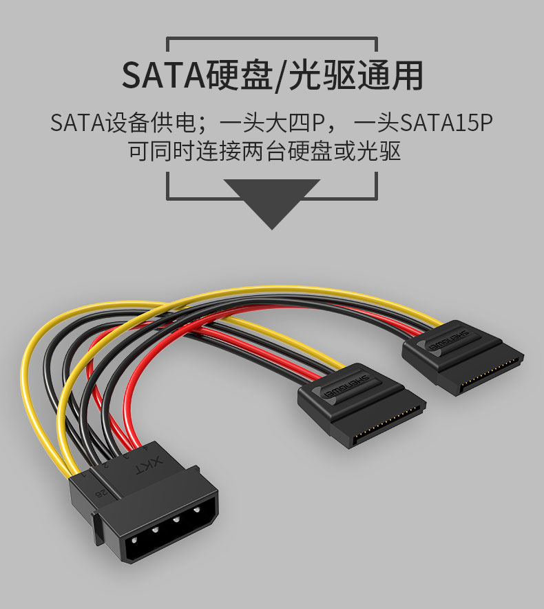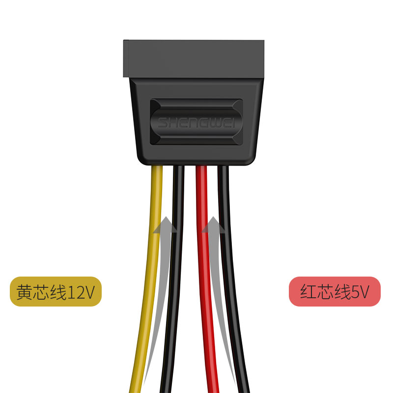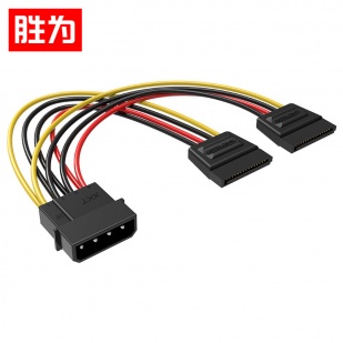 SATA電源轉(zhuǎn)接線 硬盤光驅(qū)供電線 勝為雙通道串口電源線大4Pin轉(zhuǎn)15Pin一分二延長線0.2米 SPC-202?