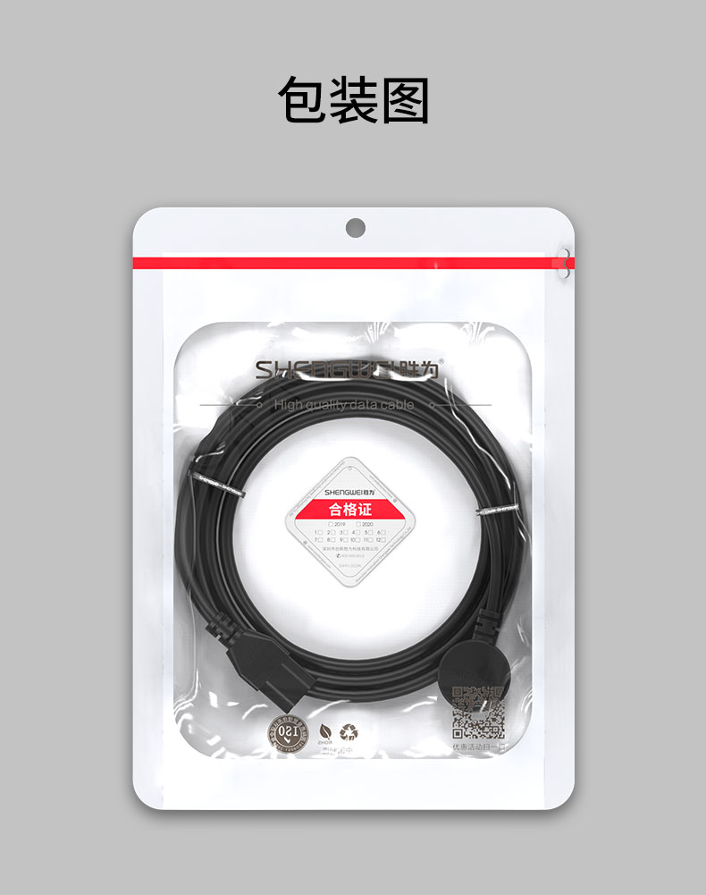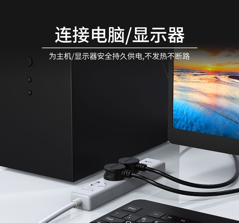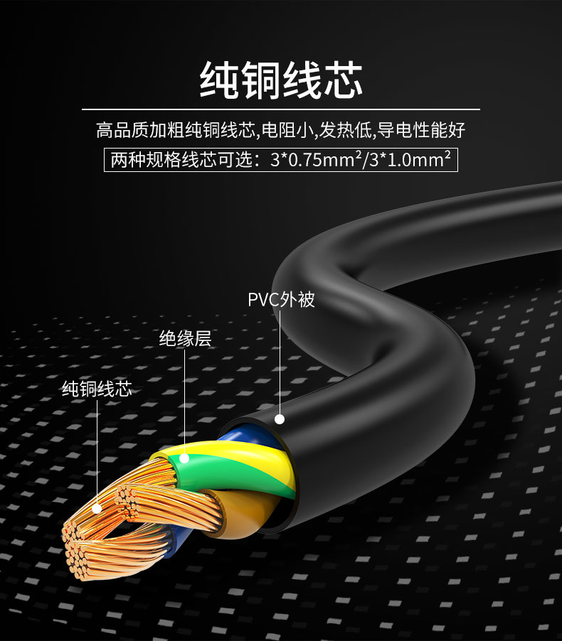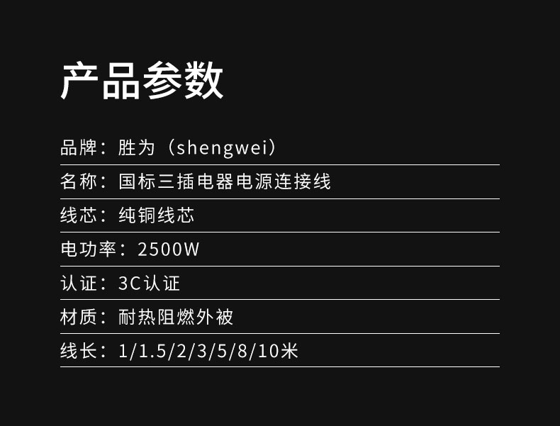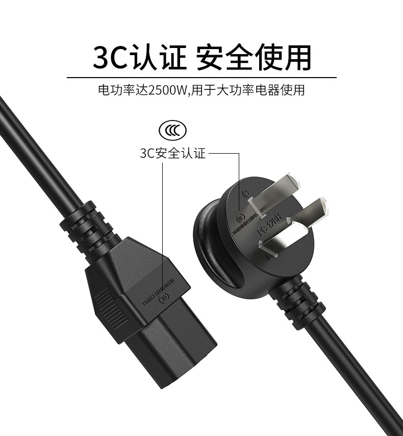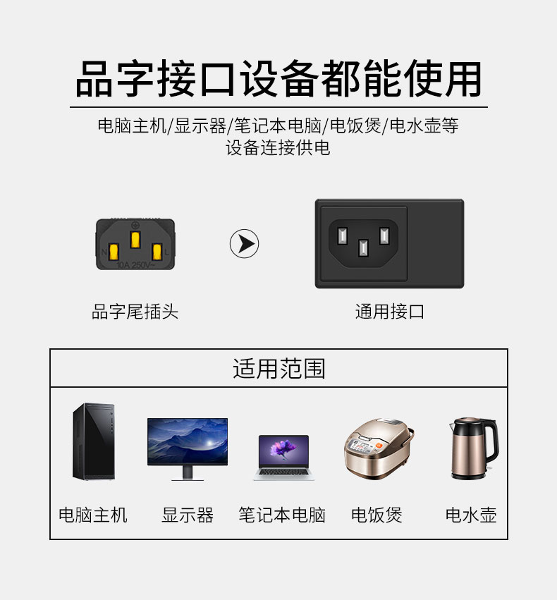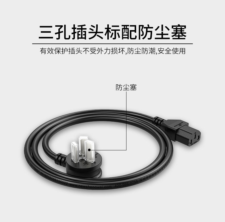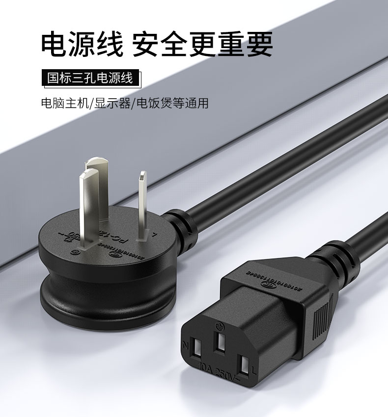 勝為電腦主機電源線 國標三孔品尾連接線 電腦主機顯示器電飯煲充電插頭連接器1米 黑 PC-2010B