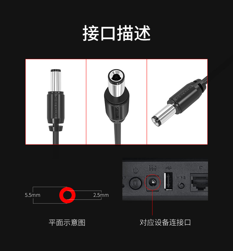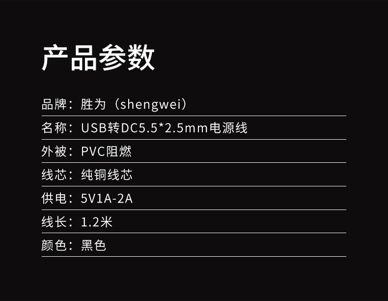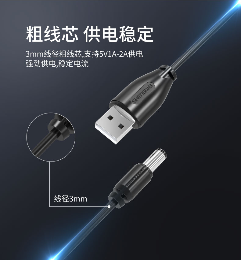 勝為USB轉(zhuǎn)DC5.5mm電源線 圓孔充電連接線 UDC-5512?