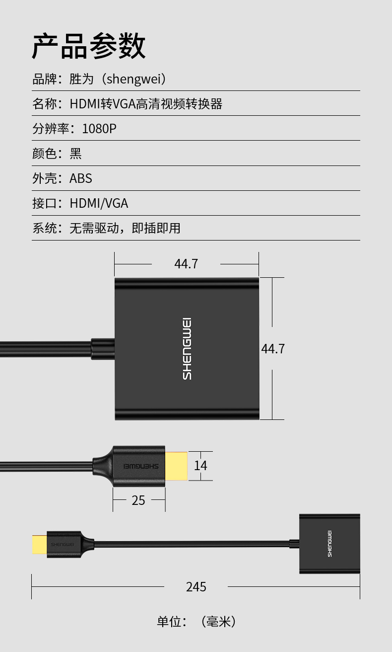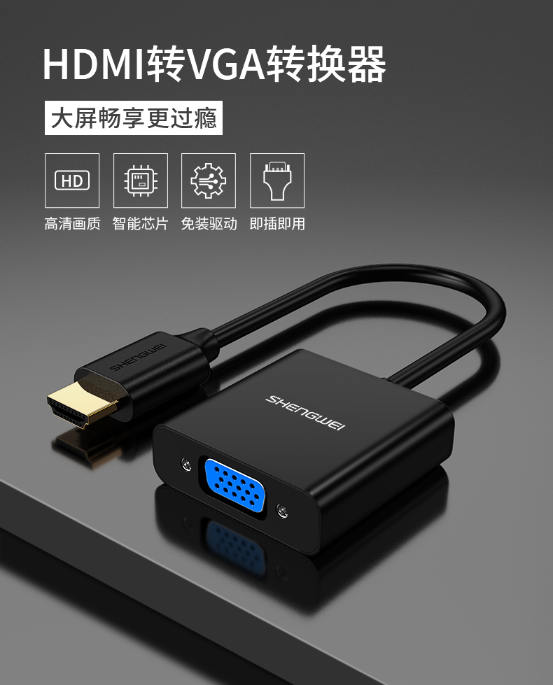 勝為HDMI轉(zhuǎn)VGA線轉(zhuǎn)換器 高清視頻轉(zhuǎn)接頭適配器 HV-602?