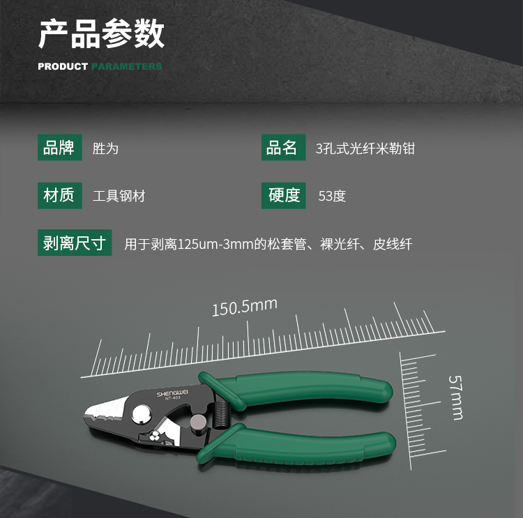 剝離尺寸:用于剝離125μm-3mm的松套管、裸光纖、皮線纖