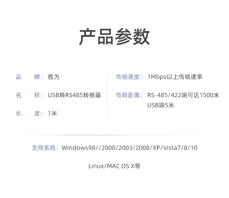 傳輸距離:RS-485/422端可達(dá)1500米, USB5