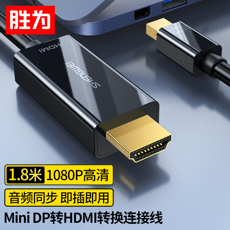 勝為Mini-DP轉(zhuǎn)HDMI轉(zhuǎn)換器 surface/蘋果筆記本雷電接口高清4K 雷電轉(zhuǎn)HDMI公口-1080P 1.8米 MN-3080