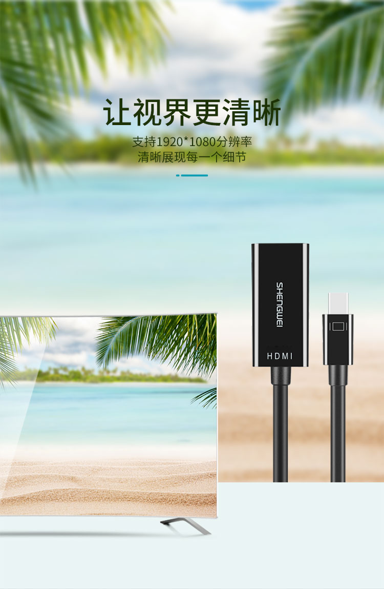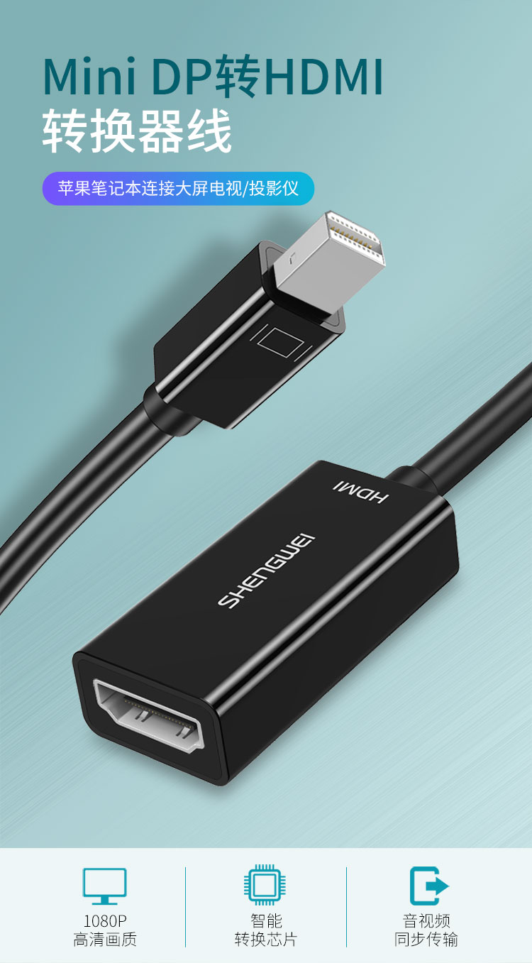 勝為Mini-DP轉(zhuǎn)HDMI轉(zhuǎn)換器 surface/蘋果筆記本雷電接口高清4K 雷電轉(zhuǎn)HDMI母口-1080P 0.2米 MN-1080