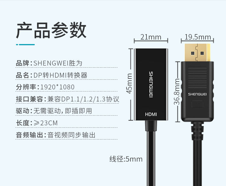 品名:DP轉(zhuǎn)HDMI轉(zhuǎn)換器