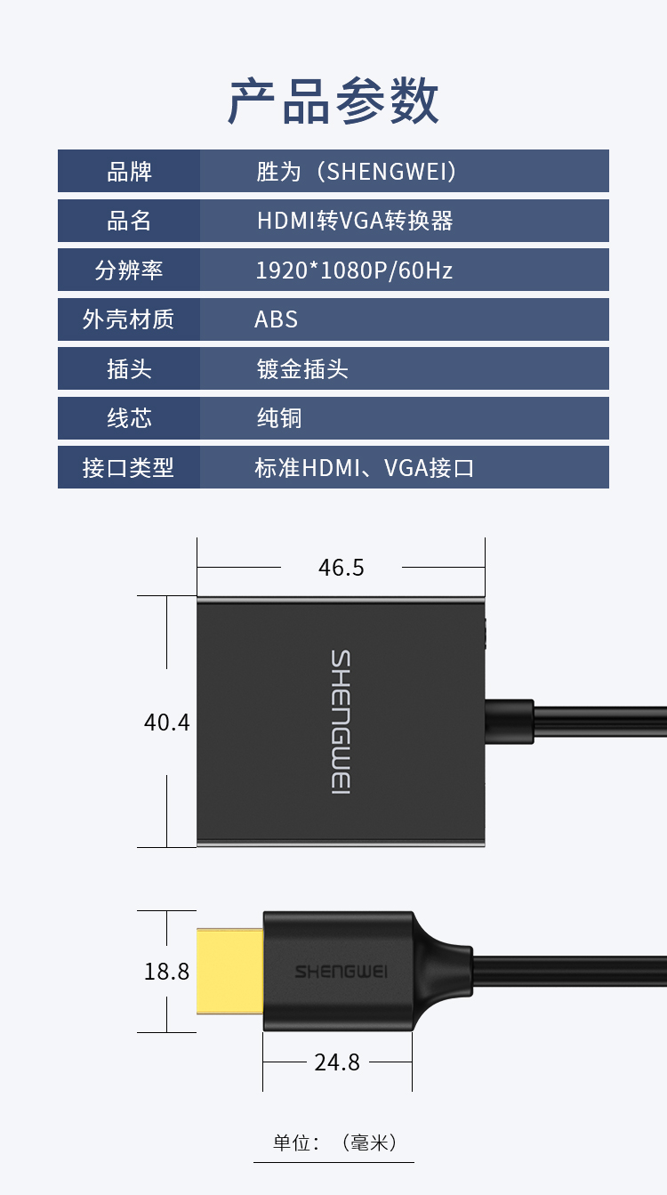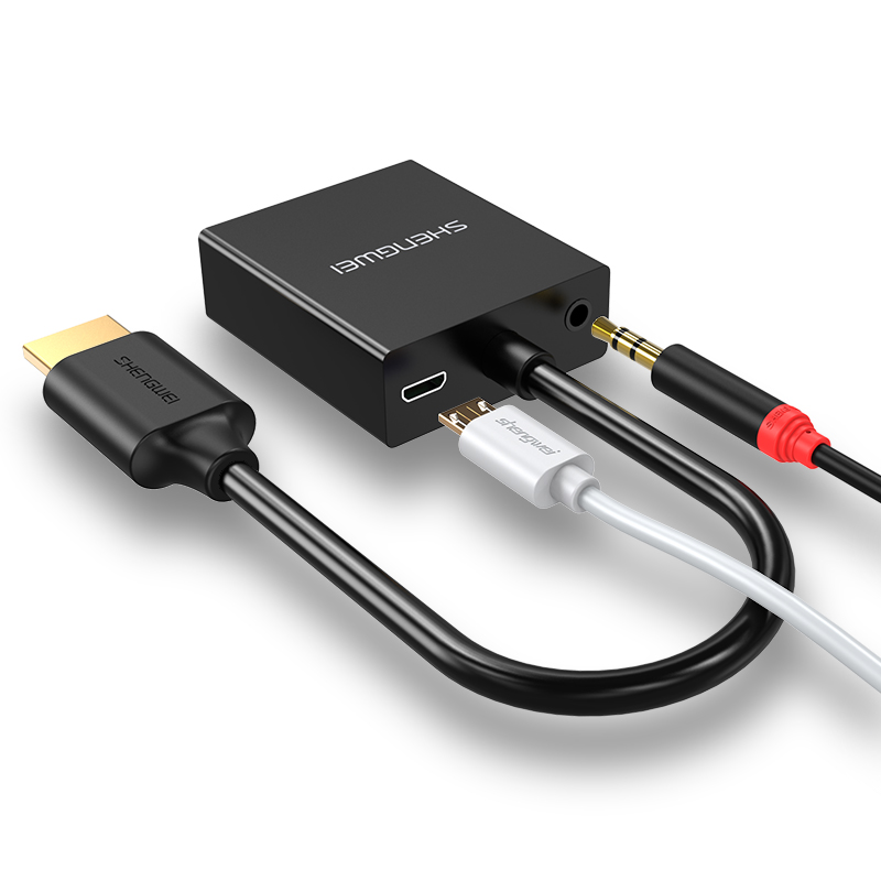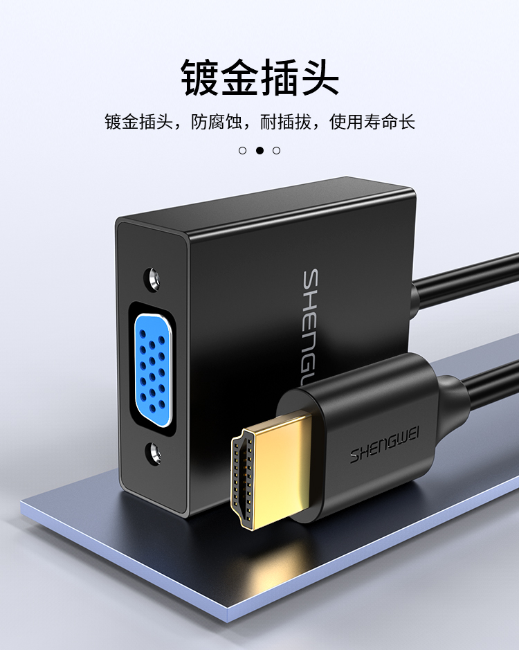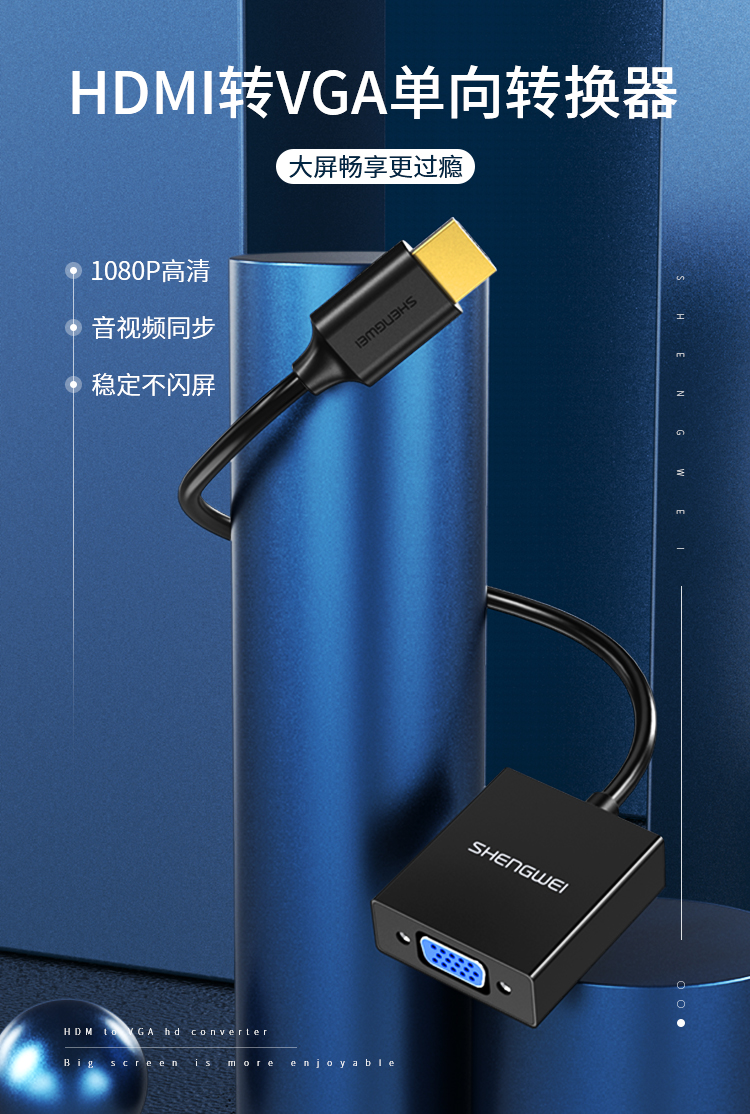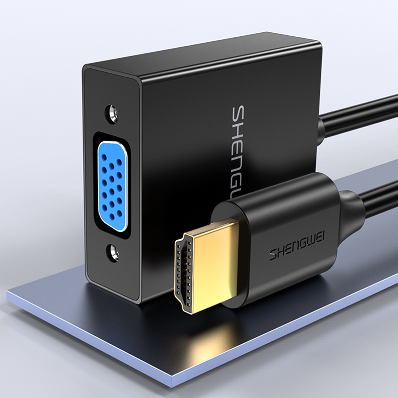 勝為HDMI轉(zhuǎn)VGA線轉(zhuǎn)換器 高清視頻轉(zhuǎn)接頭帶音頻 電腦電視盒子連接顯示器投影儀線 黑?HV-702?