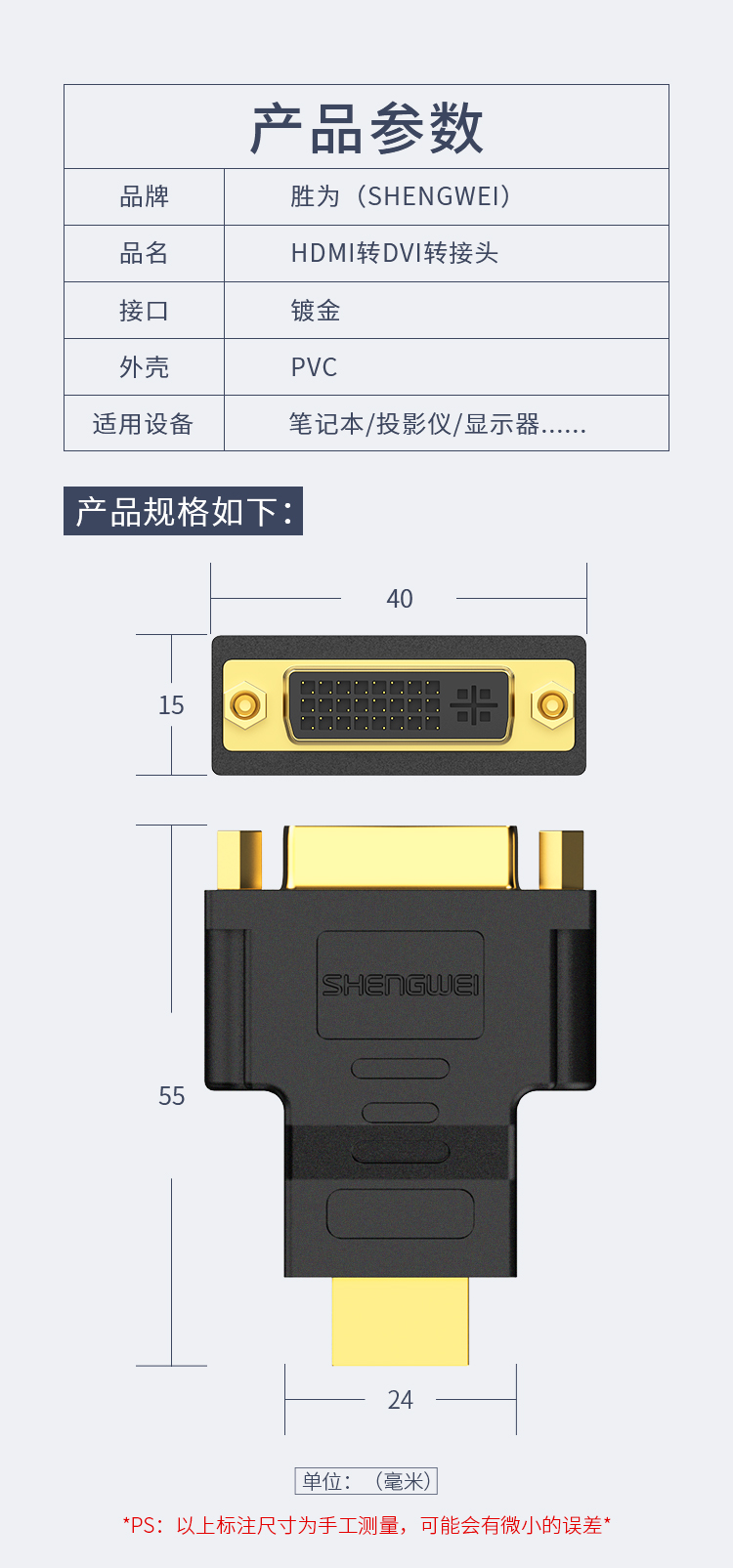 品名:HDMI轉(zhuǎn)DVI轉(zhuǎn)接頭