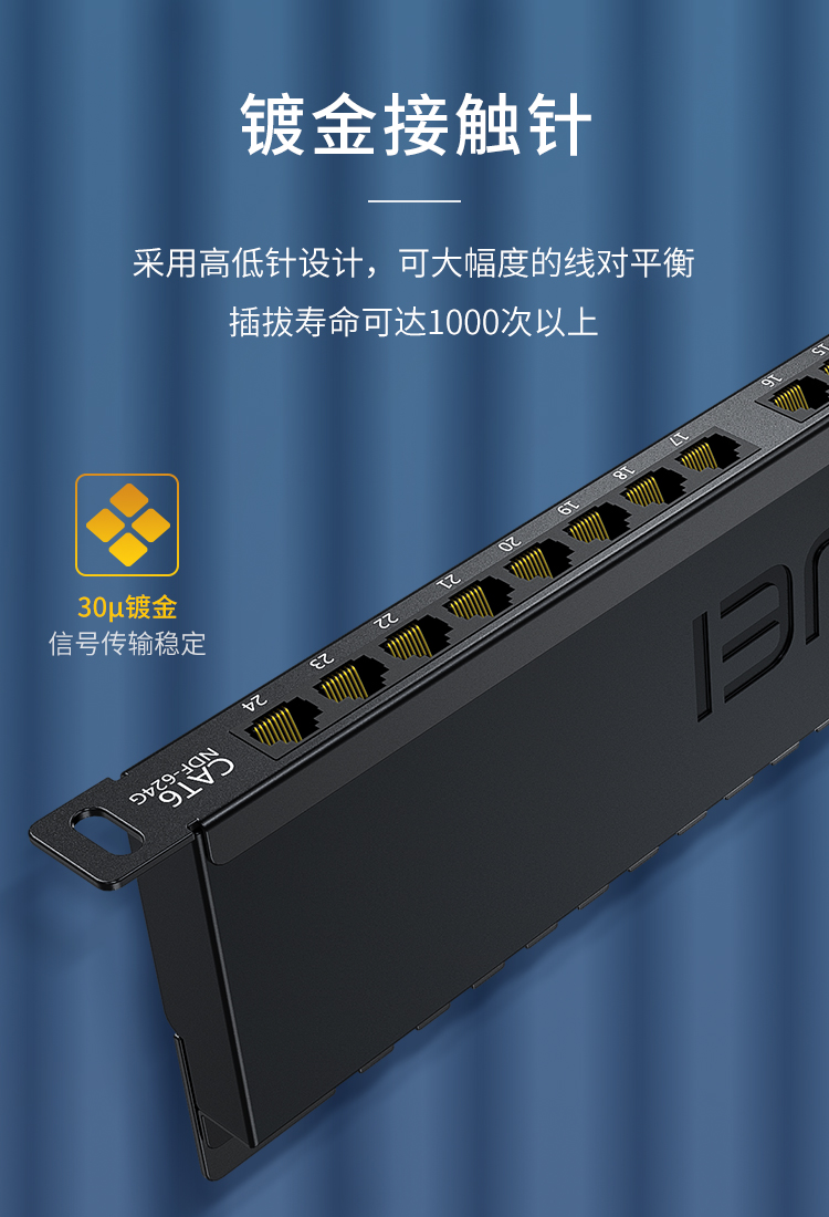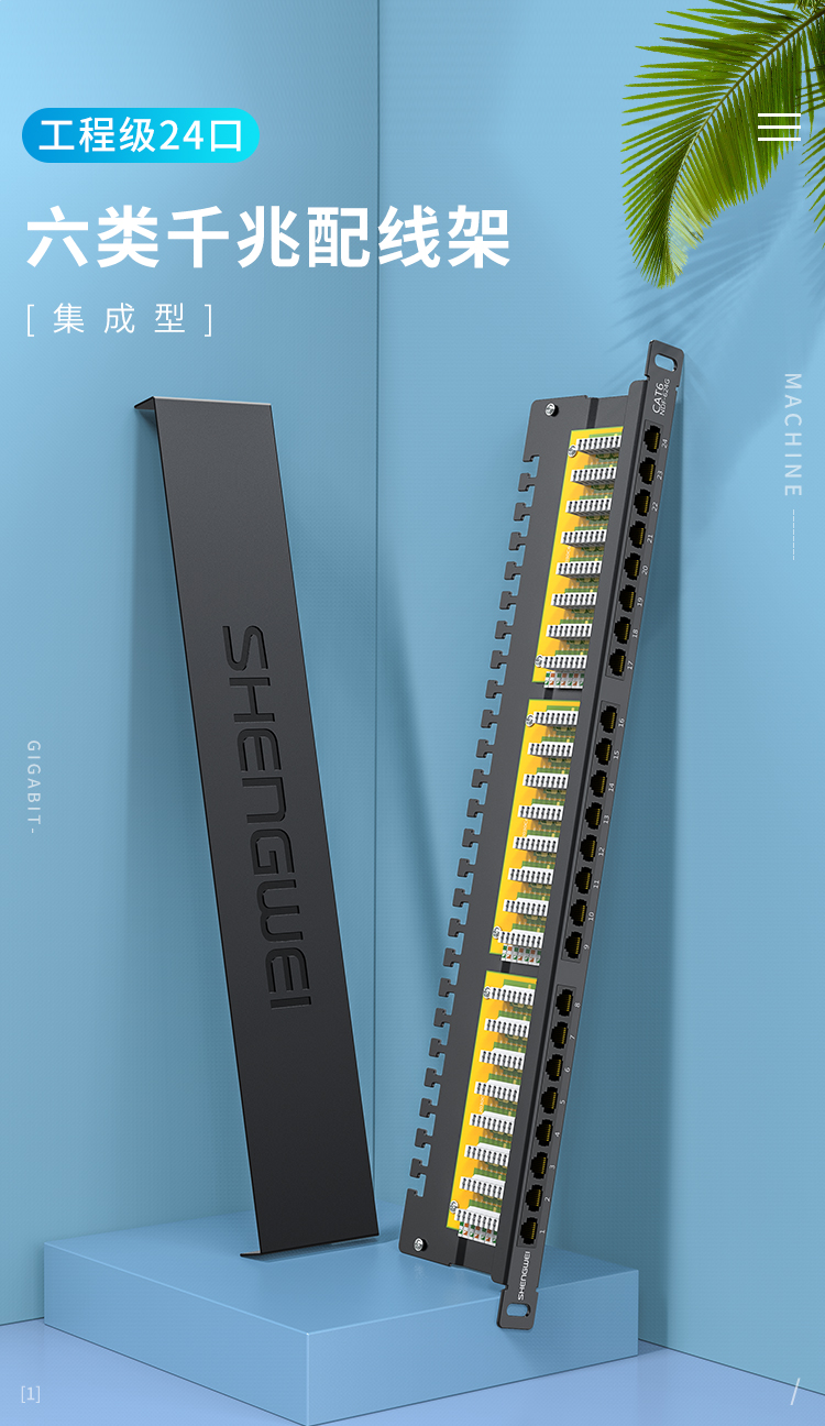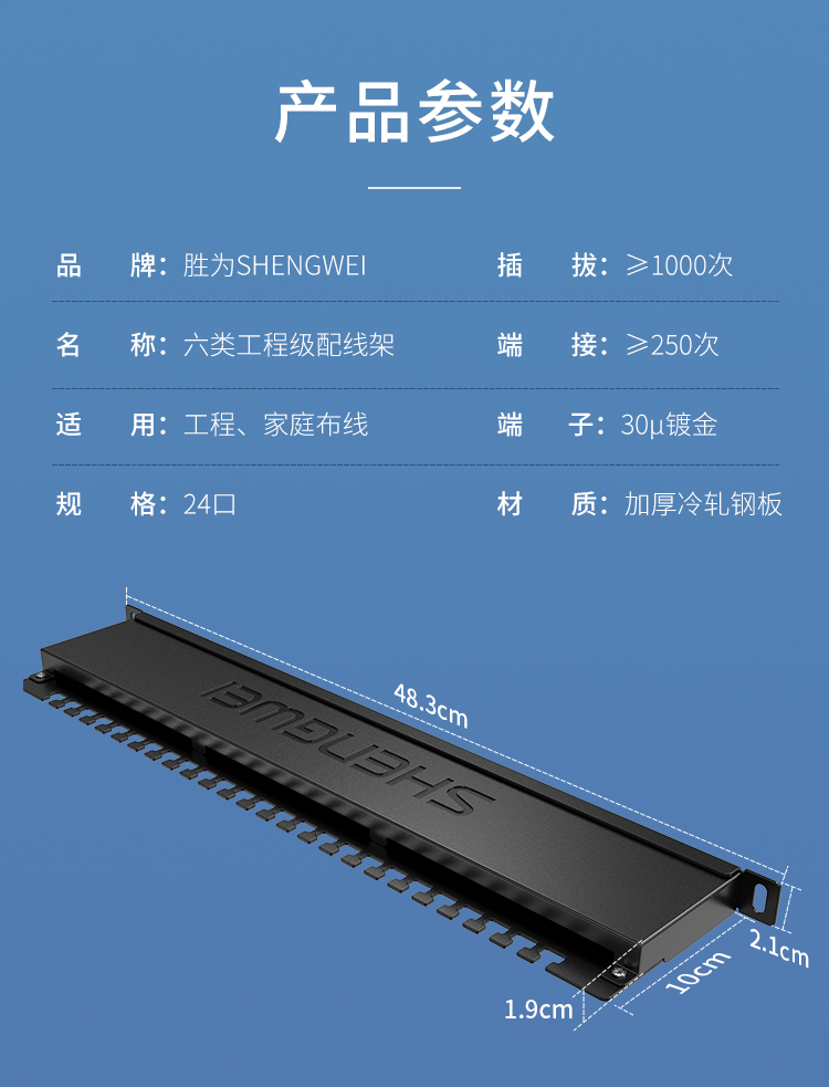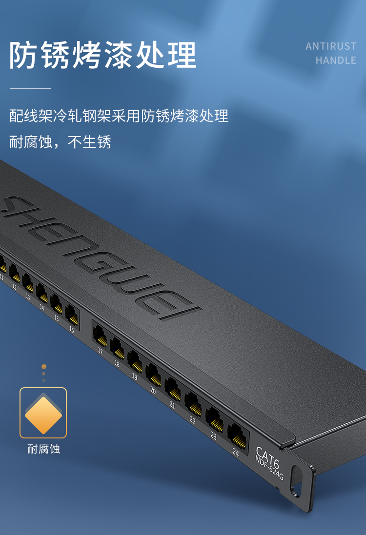 六類配線架24口 勝為工程級30U鍍金接口 0.5U機架式網(wǎng)絡(luò)配線架 NDF-624G