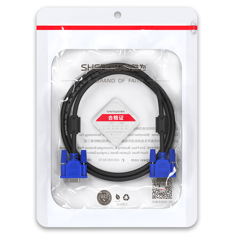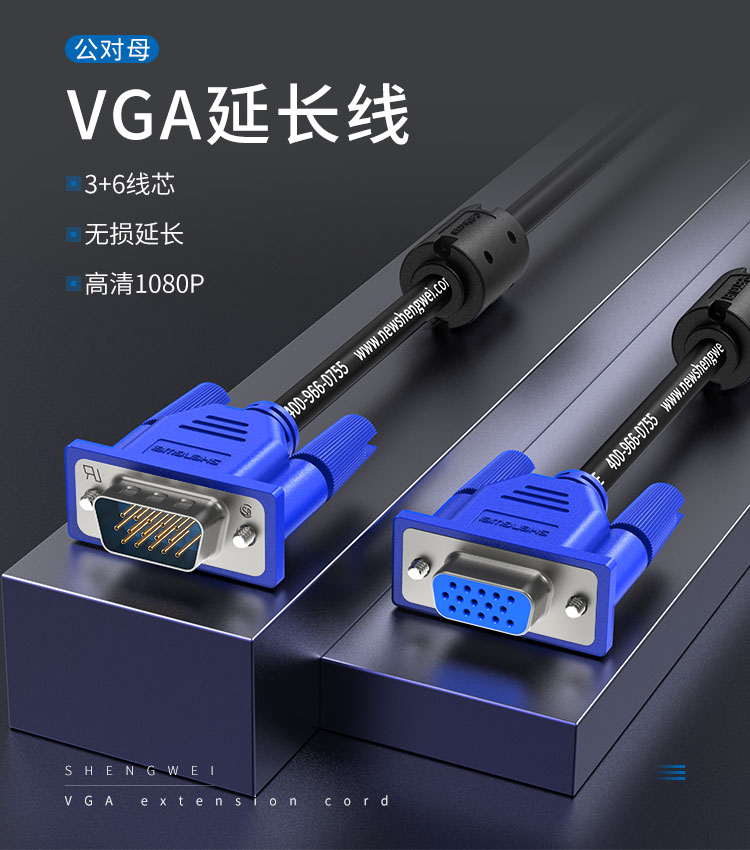 勝為VGA線 公對母高清延長線 3+6雙磁環(huán) 電腦電視顯示器投影儀視頻連接線 1.8米 VC-4018