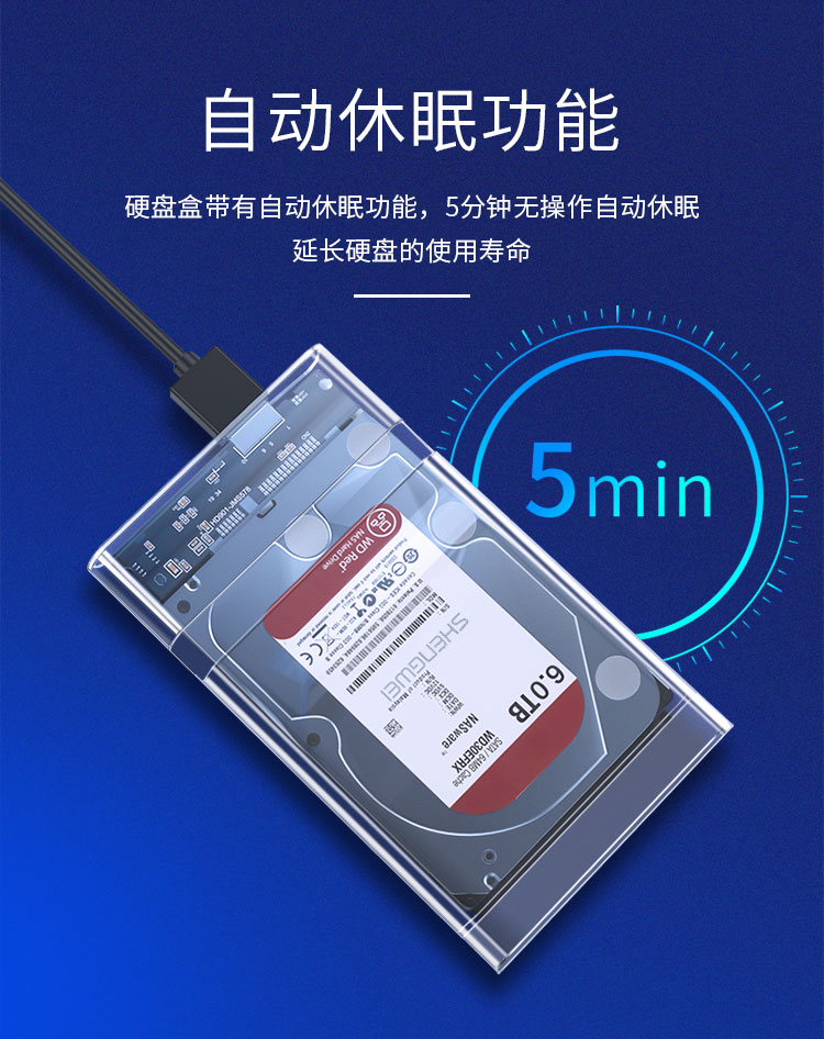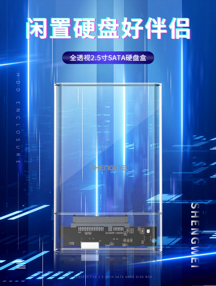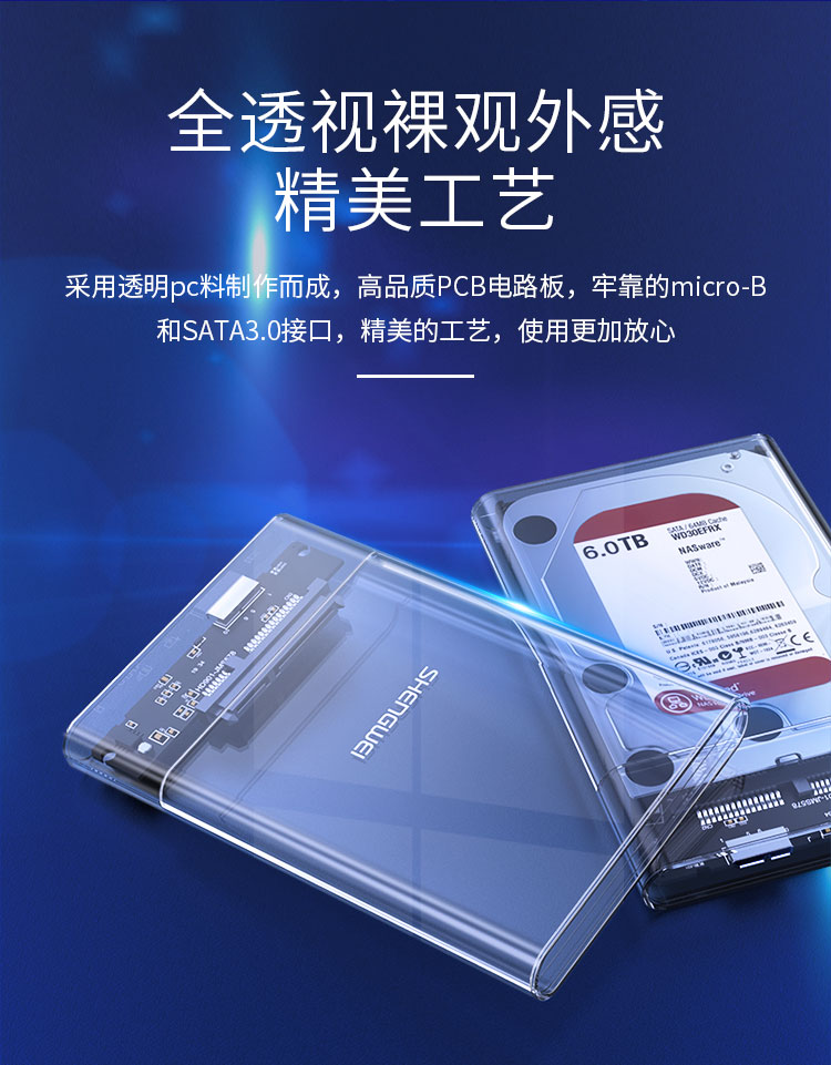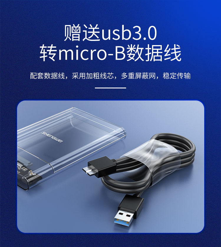 勝為移動(dòng)硬盤盒2.5英寸 USB3.0SATA串口筆記本硬盤外置殼固態(tài)硬盤ssd 全透明-雙頭USB款 ZST1001K