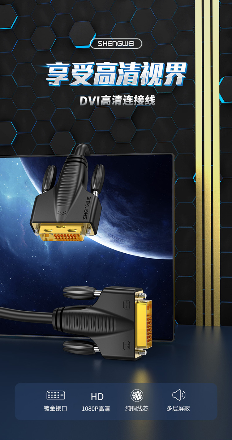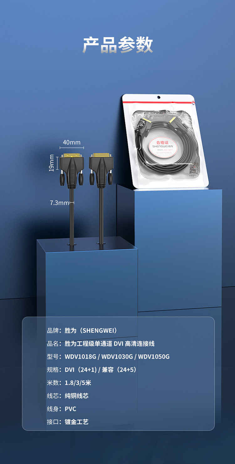 勝為DVI高清連接線24+1工程級單通道公對公電腦顯示器連接線轉(zhuǎn)換線WDV1018G?