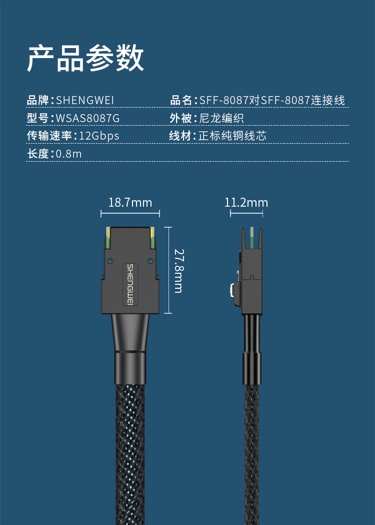 勝為SFF-8087對SFF-8087連接線 SAS線36P對36P 支持12GPBS 0.8米WSAS8087G