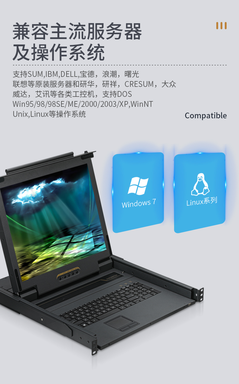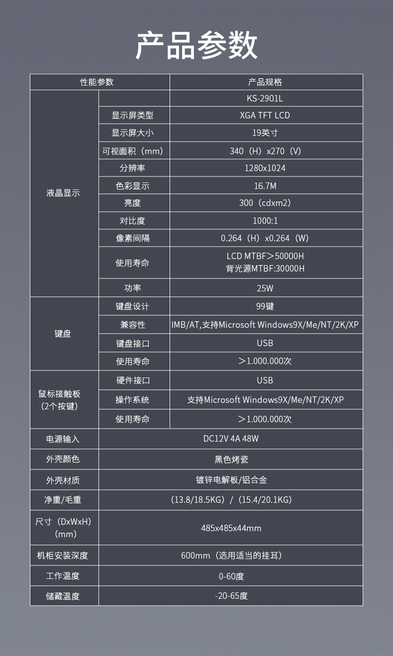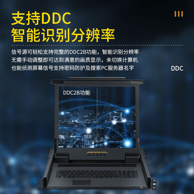 數(shù)字KVM切換器單口 19英寸LCD顯示器配VGA線 勝為單口機(jī)架式電腦轉(zhuǎn)換器 KS-2901L
