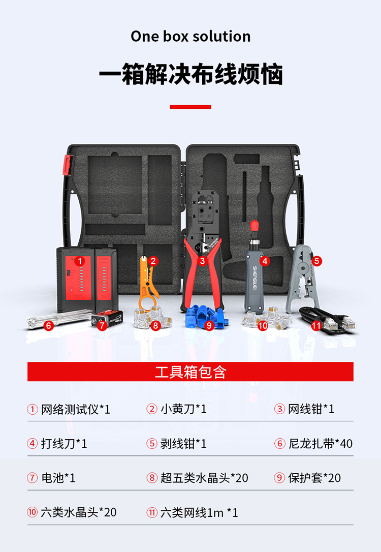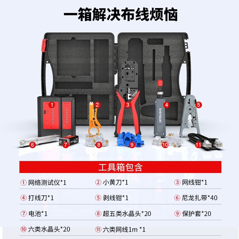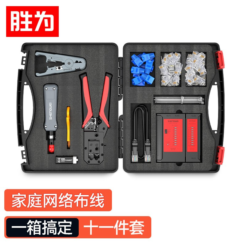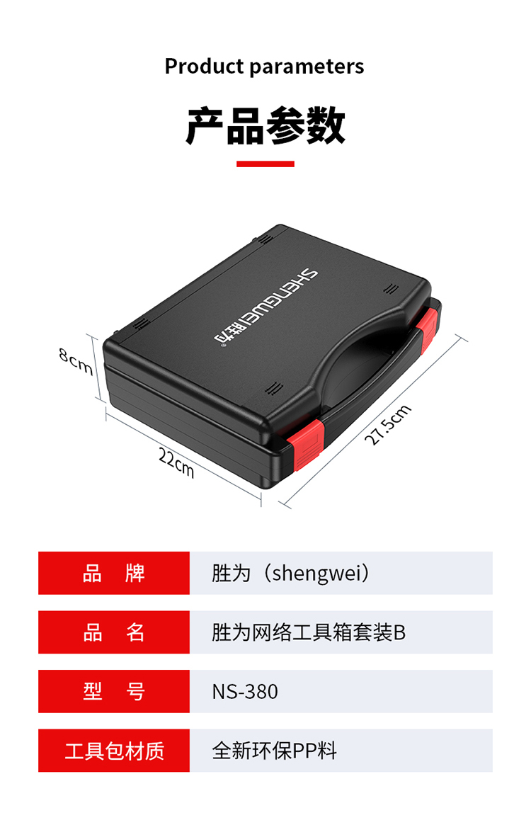 勝為網(wǎng)絡(luò)工具箱套裝 多功能網(wǎng)線鉗水晶頭測線儀剝線刀扎帶壓線鉗普通級(jí)工具箱 NS-380