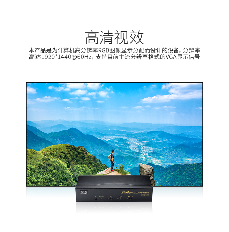 規(guī)格:分辨率高達(dá)1920*1440@60HZ 支持目前主流分辨率格式的VGA顯示信號(hào)