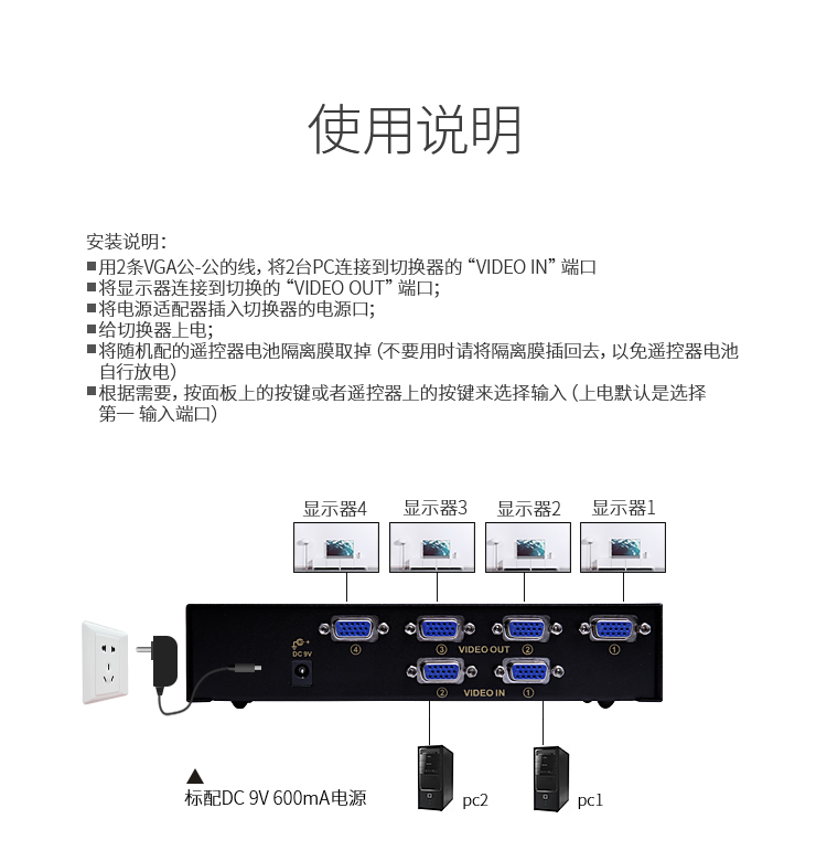 品名:勝為(shengwei) VGA4進(jìn)4出切換器 帶遙控