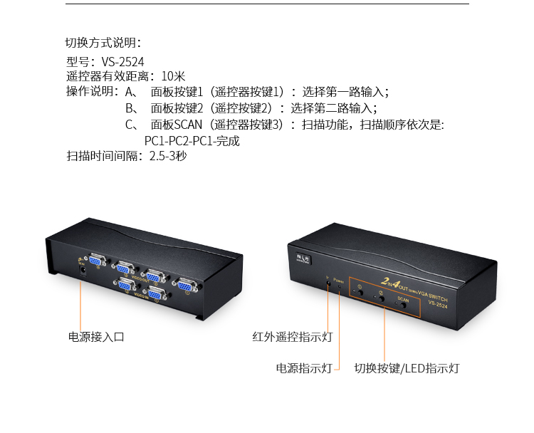 勝為 VGA四進(jìn)四出切換器 帶遙控 4進(jìn)4出視頻分配器共享器?VS-2544