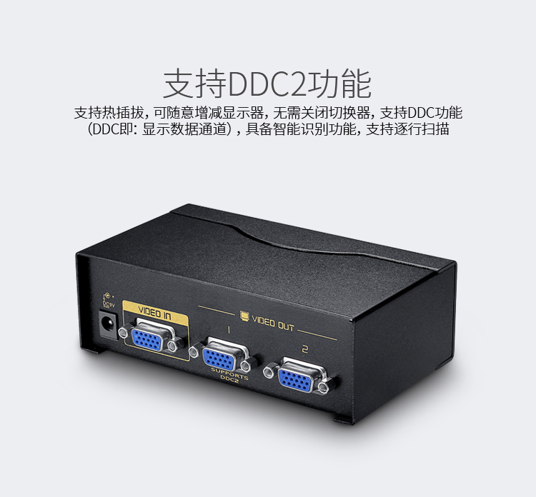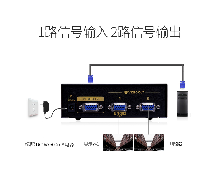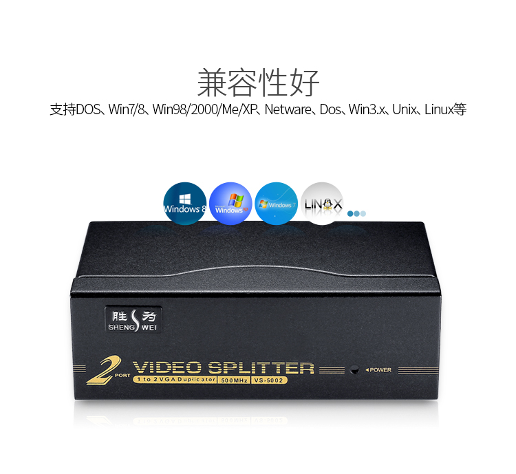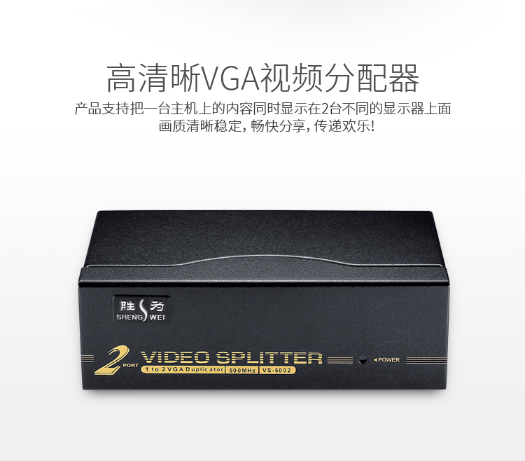 勝為VGA一分二分配器 2口配原裝線 500MHZ電視電腦屏幕轉(zhuǎn)換視頻分頻 VS-5002