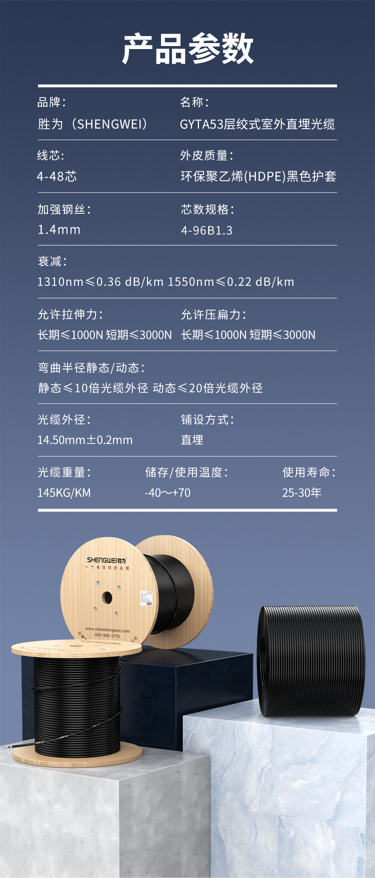 勝為GYTA53室外單模重鎧層絞式鎧裝光纜