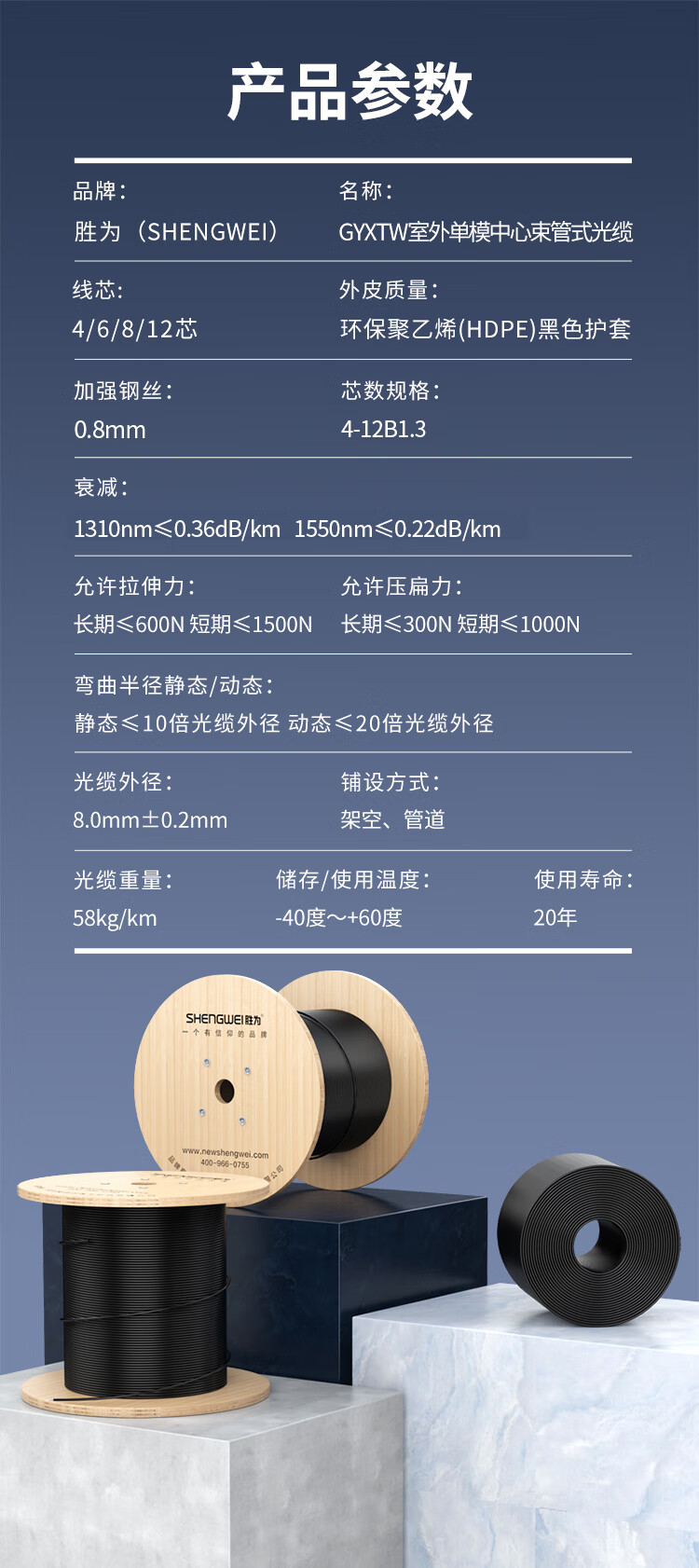 勝為GYXTW室外單模中心束管式鎧裝光纜