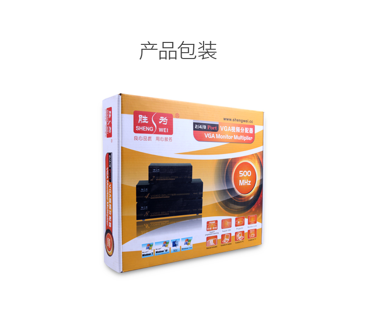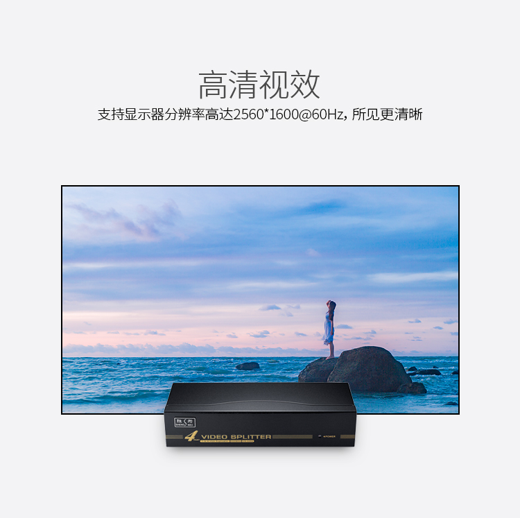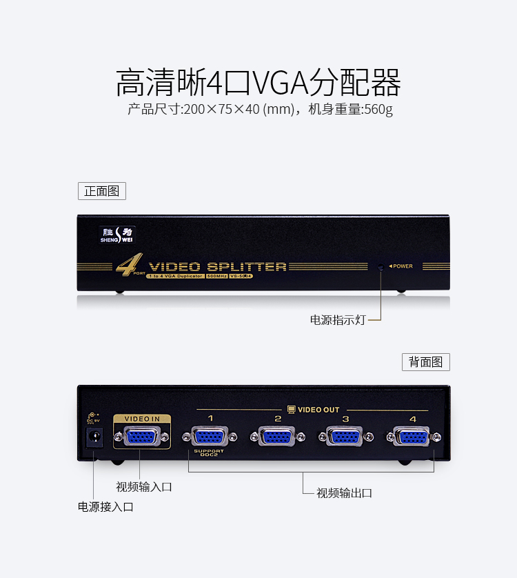 勝為VGA一分四分配器 4口配原裝線 500MHZ電視電腦屏幕轉(zhuǎn)換視頻分頻 VS-5004