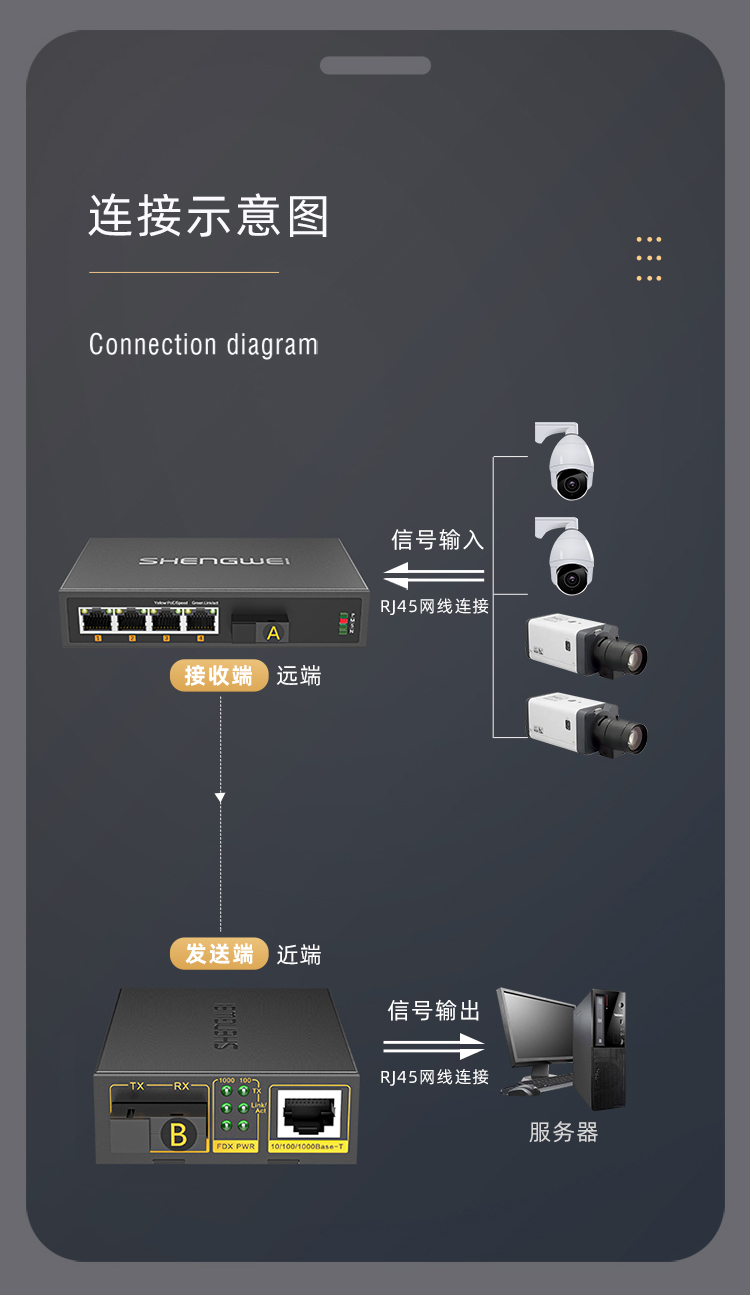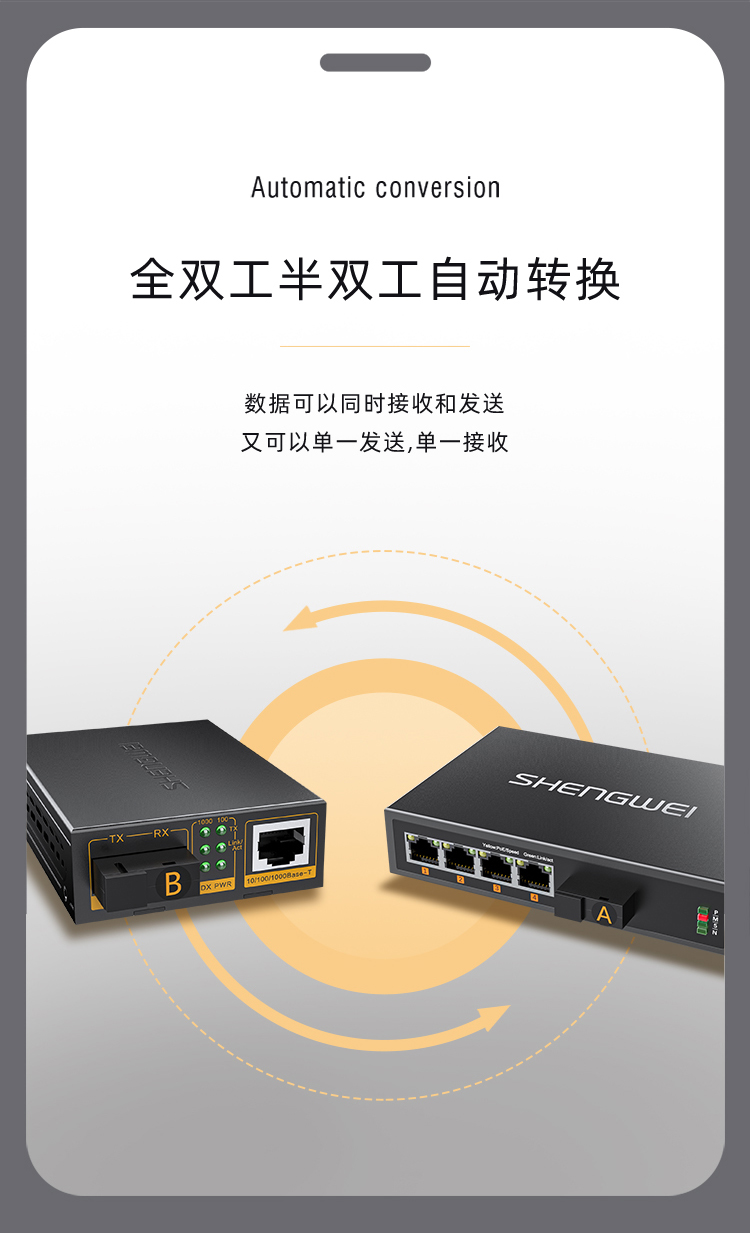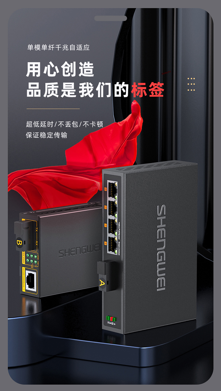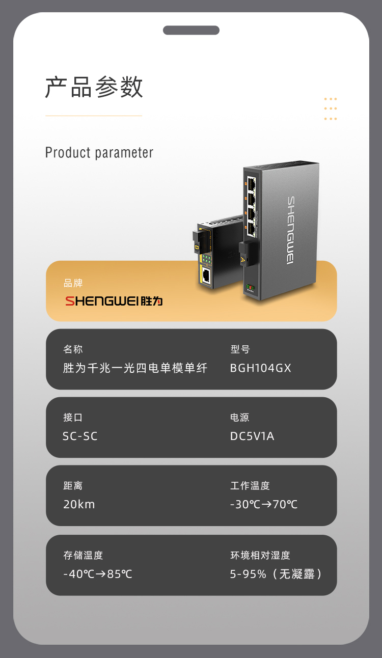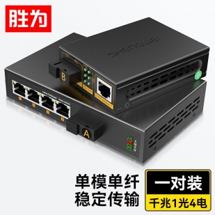 1光4電千兆單模單纖 一對(duì)裝 勝為SC口光纖收發(fā)器 20KM BGH104GX