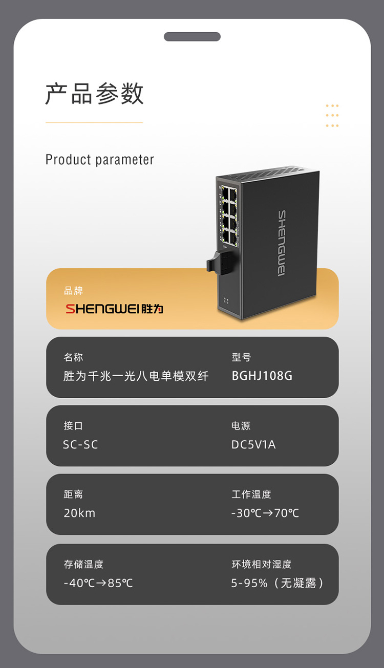 品名:勝為一光八電千兆電單模雙纖光纖收發(fā)器