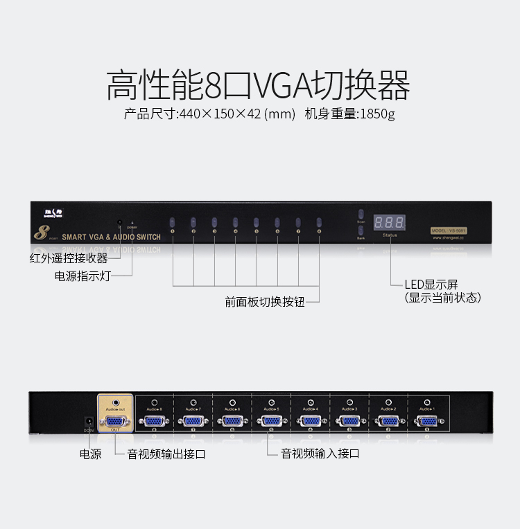 勝為VGA切換器八進一出 電腦屏幕顯示器音視頻轉換器 遙控切換配原裝線 VS-5081