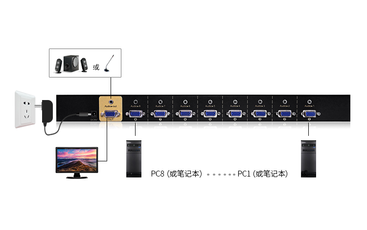 品名:勝為(shengwei)機架式8口VGA音視頻切換器