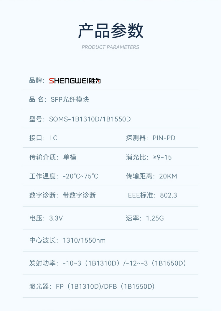 SFP光模塊1.25G單模單纖光纖模塊(1310nm,20km,LC) SOMS-1B1310D/1B1550D