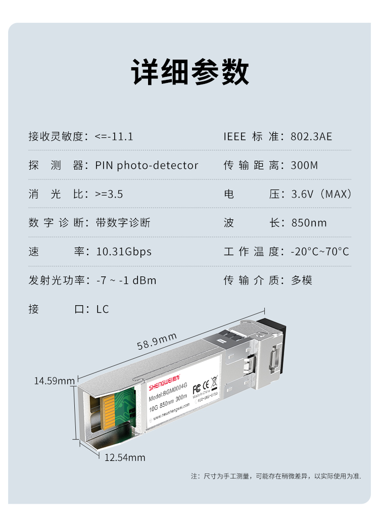 SFP光模塊萬兆10G多模雙纖 (850nm,300m,LC)兼容華為/中興 BGM0004G