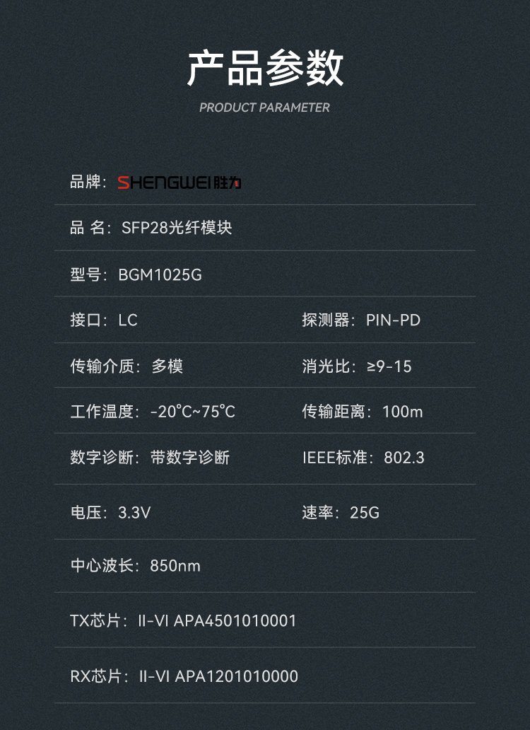 SFP28光模塊萬(wàn)兆25G多模雙纖 (850nm,100m,LC)兼容華為/中興 BGM1025G