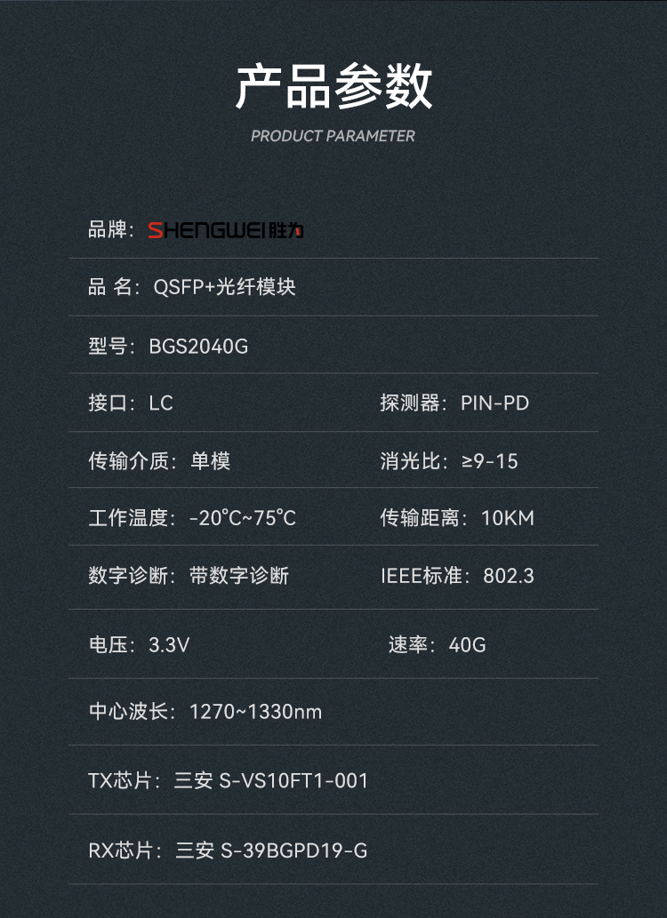 QSFP+光模塊萬兆40G單模雙纖 (1310nm,10km,LC)兼容華為/中興 BGS2040G
