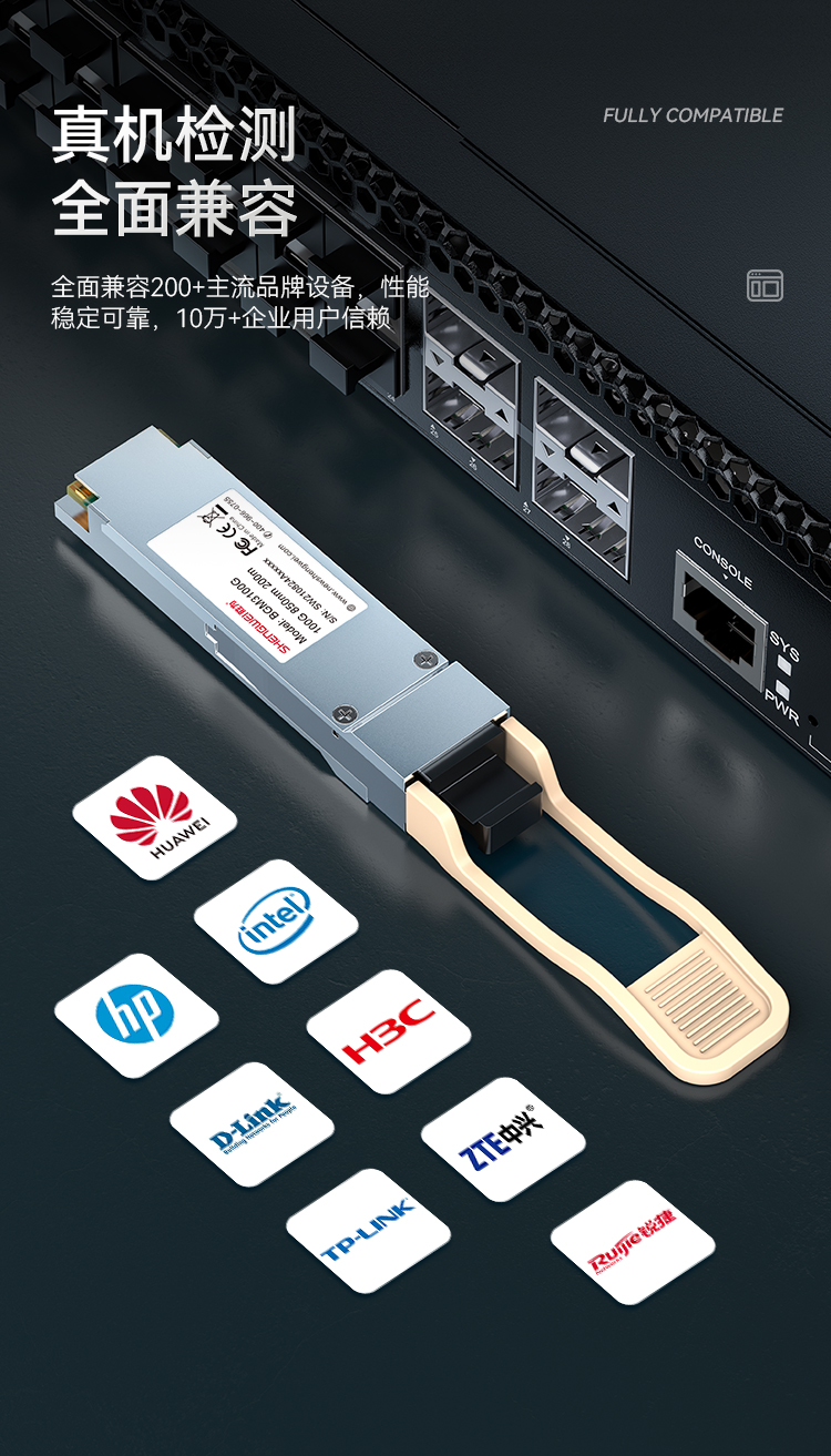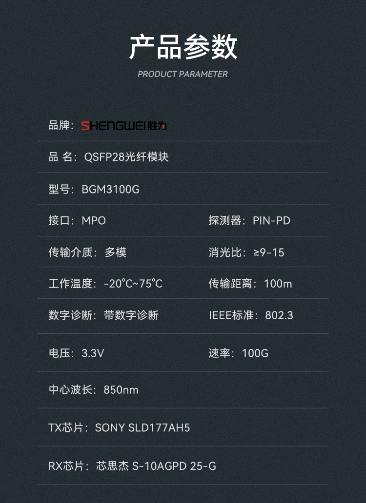 QSFP28光模塊 100G多模雙纖萬兆 (850nm,100m,MPO)兼容華為/中興 BGM3100G