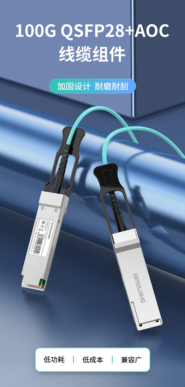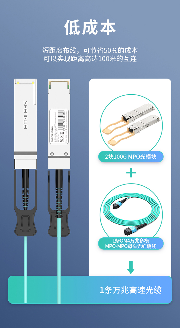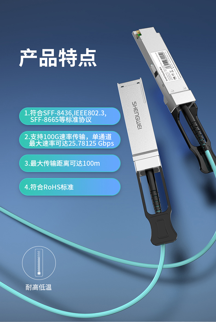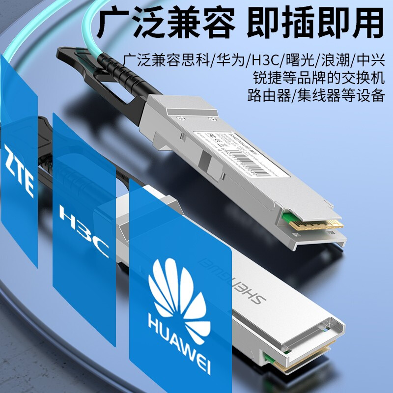 高速電纜QSFP28 AOC光纖堆疊線 萬兆100G有源直連光纜5米 通用華為H3C思科曙光等 BAOC0405