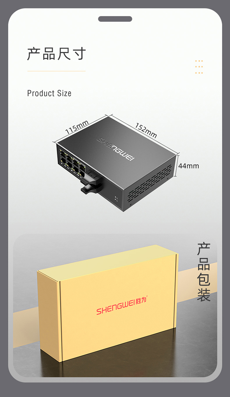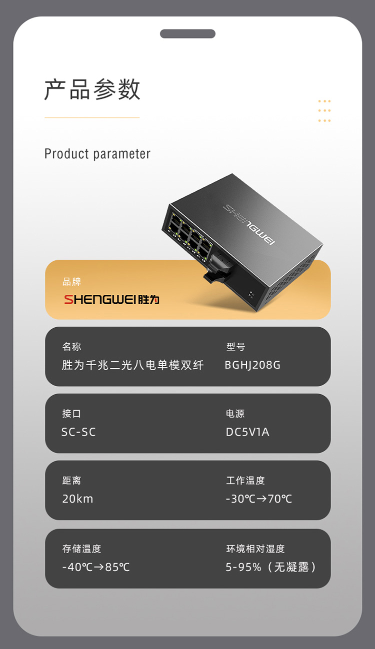 2光8電千兆單模雙纖 單個(gè)裝 勝為SC口光纖收發(fā)器 20KM BGHJ208G