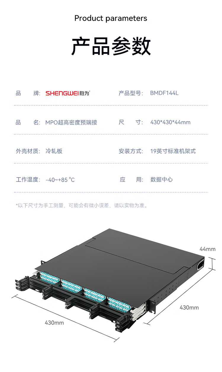 MPO配線箱1U 144芯多模滿配 超高密度模塊化終端盒配線架預(yù)端接分線箱 BMDF144L