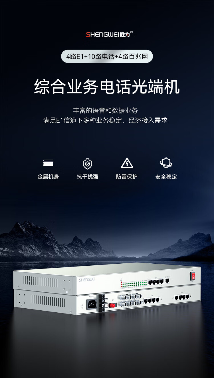 業(yè)務(wù)端口:4路E1,10路電話,4路百兆以太網(wǎng)