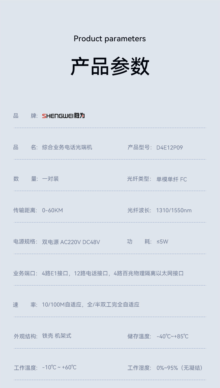 4路E1+12路電話+4路百兆隔離網(wǎng)絡(luò) 綜合業(yè)務(wù)電話光端機(jī) PCM語(yǔ)音光端機(jī) 60KM FC單纖桌面式 一對(duì) D4E12P09