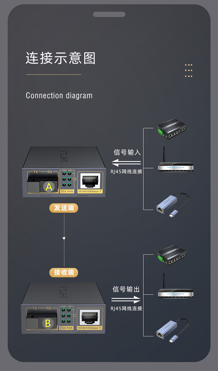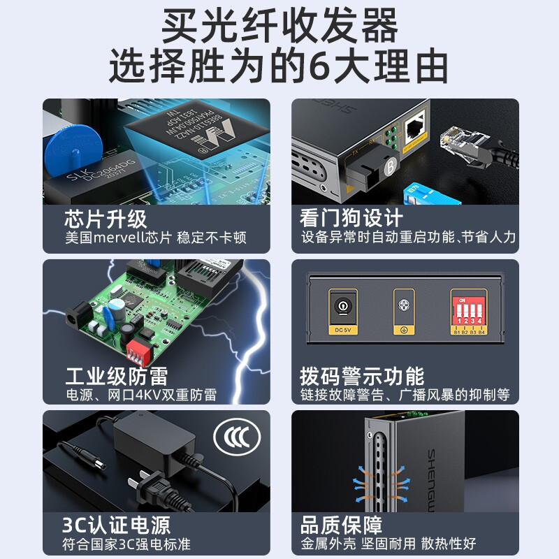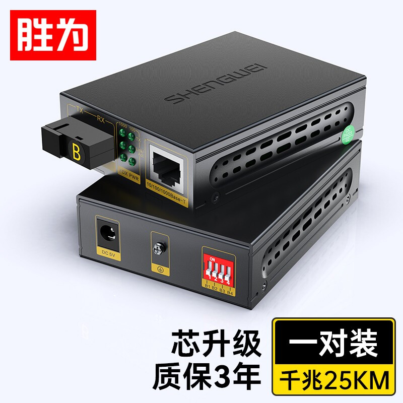 千兆單模單纖 一對裝 25KM 勝為SC口自適應(yīng)光纖收發(fā)器 FC-211AB