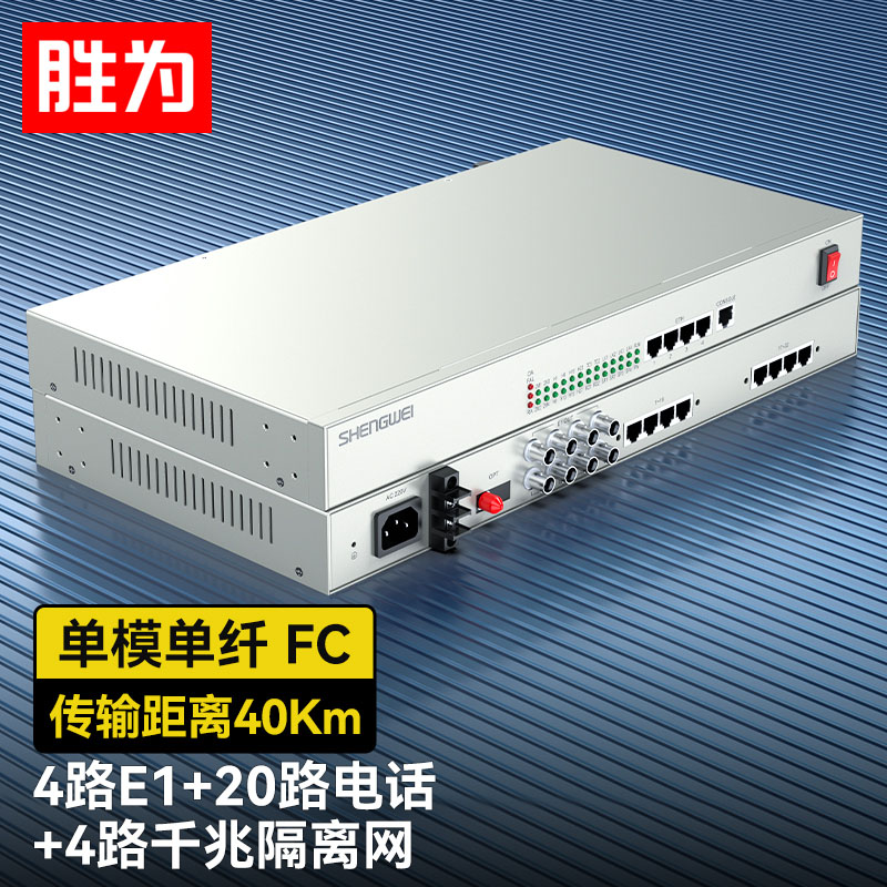 4路E1+20路電話+4路千兆隔離網(wǎng)絡(luò) 綜合業(yè)務(wù)電話光端機(jī) PCM語音光端機(jī) 40KM FC單纖桌面式 一對(duì) D4E20P12