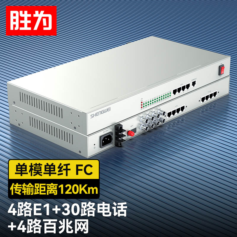 4路E1+30路電話+4路百兆網(wǎng)絡(luò) 綜合業(yè)務(wù)電話光端機(jī) PCM語音光端機(jī) 120KM FC單纖機(jī)架式 一對(duì) D4E30P14