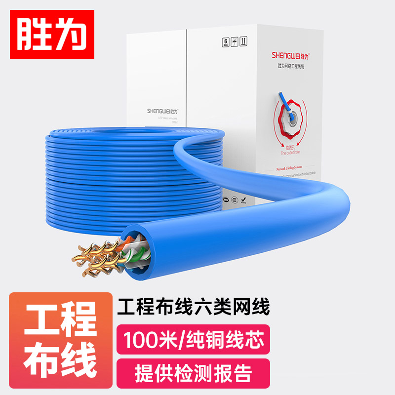 工程六類網(wǎng)線【阻燃版0.57線芯】勝為非屏蔽千兆網(wǎng)線家用網(wǎng)絡(luò)布線純銅雙絞線100米/箱 CLC-6100