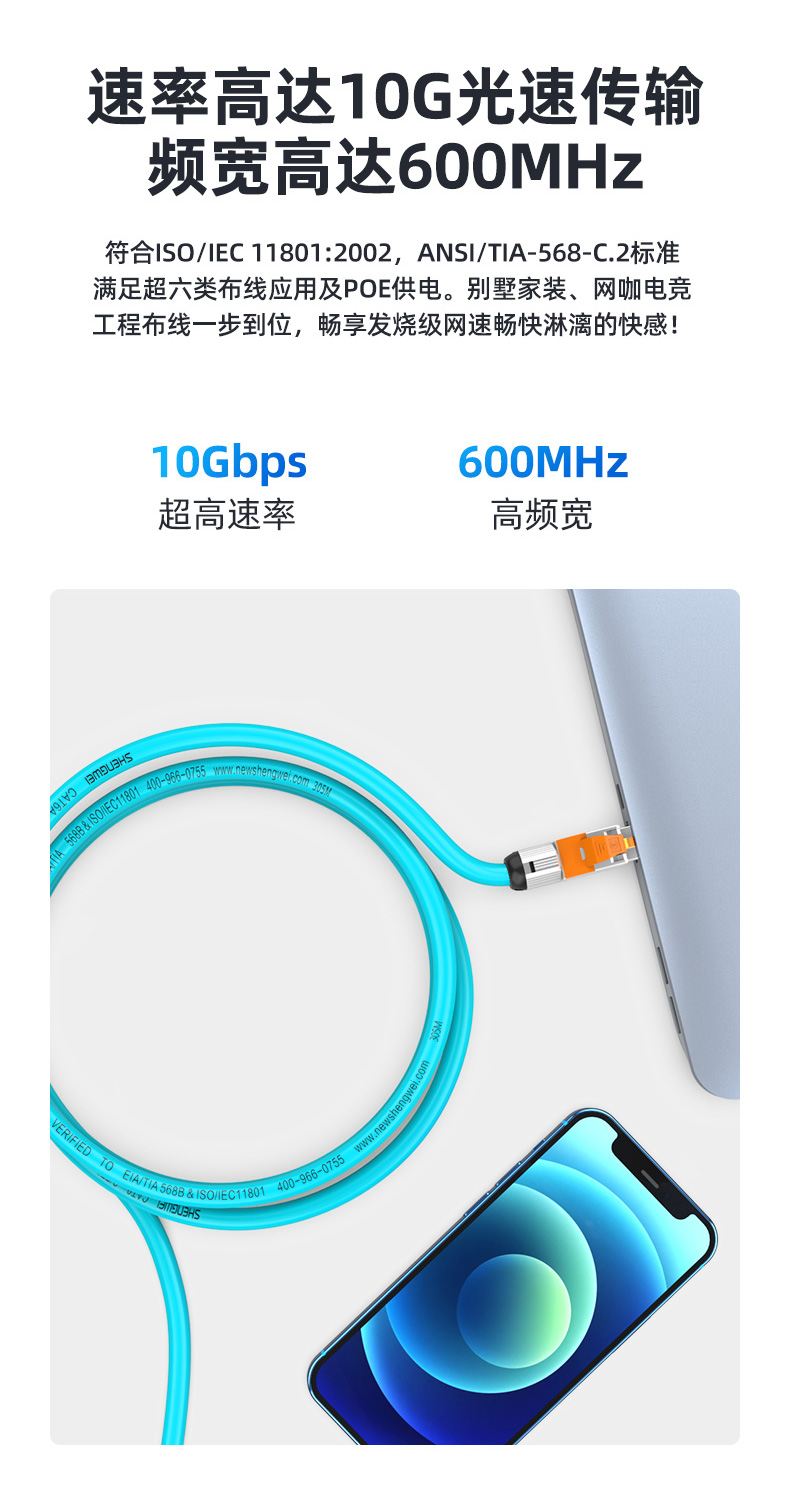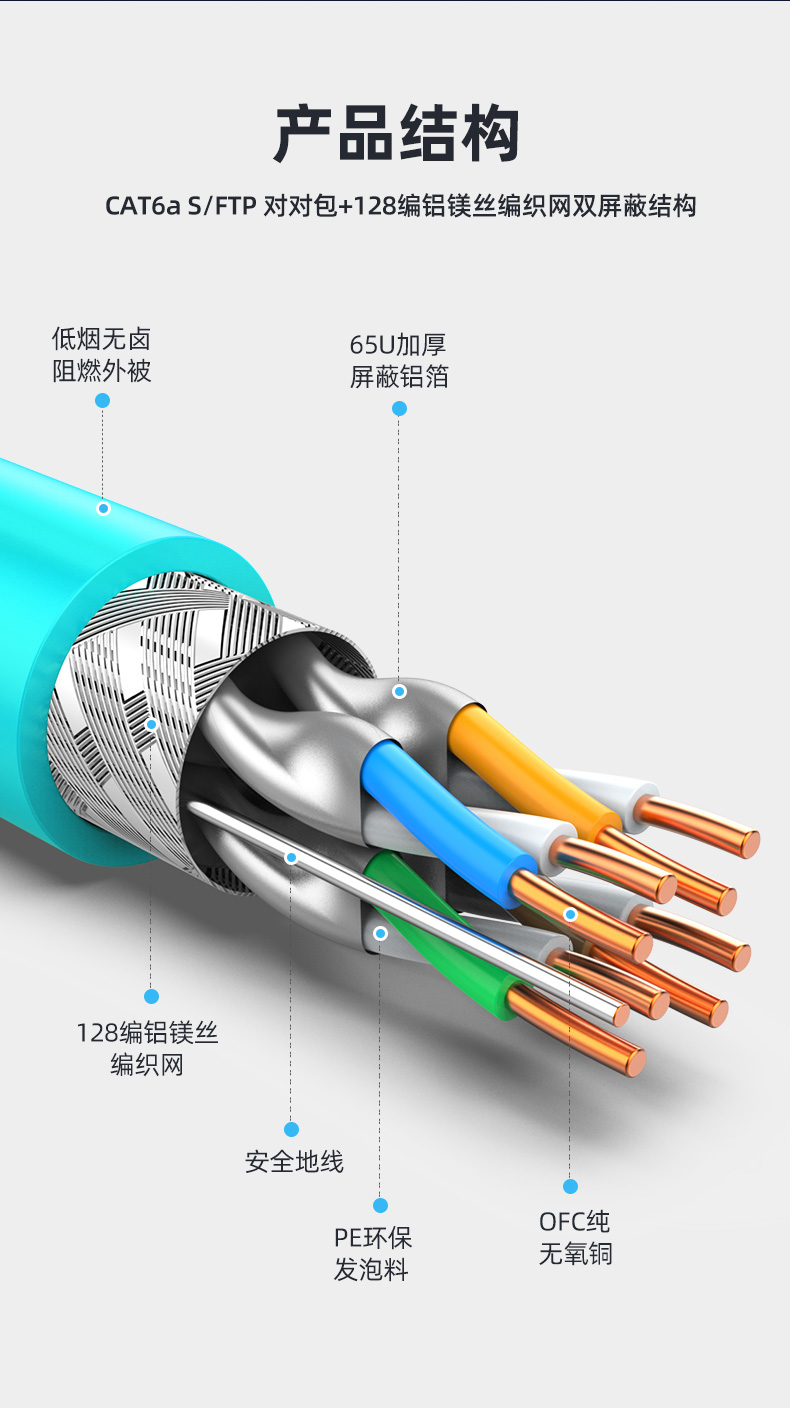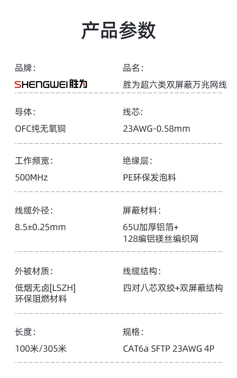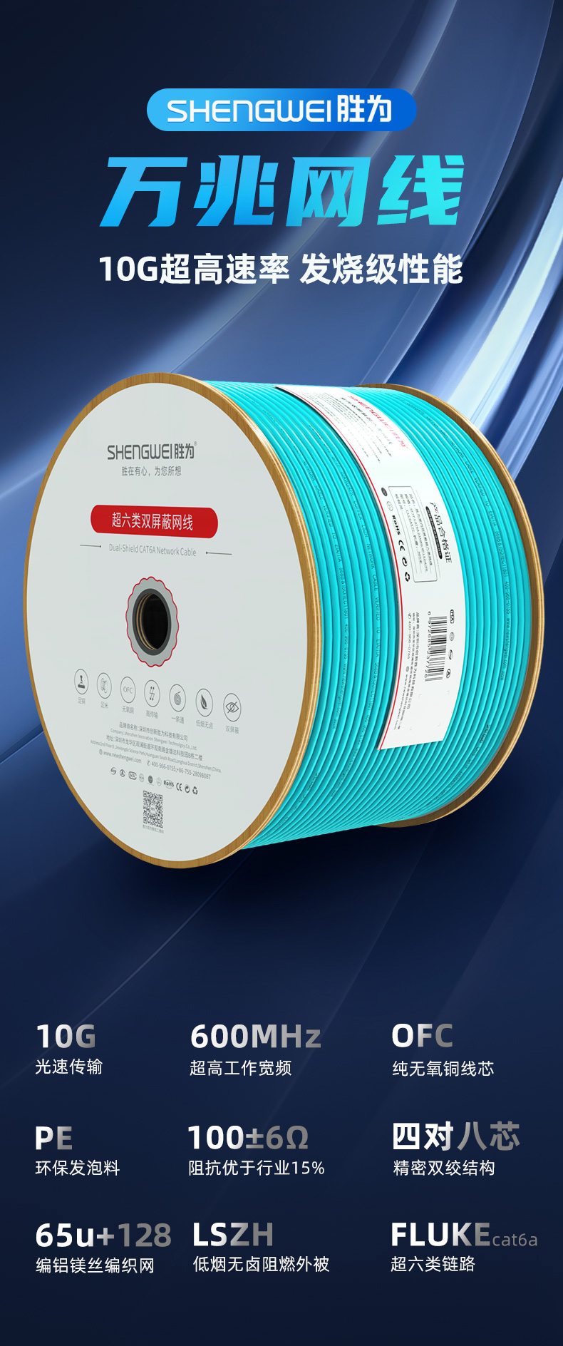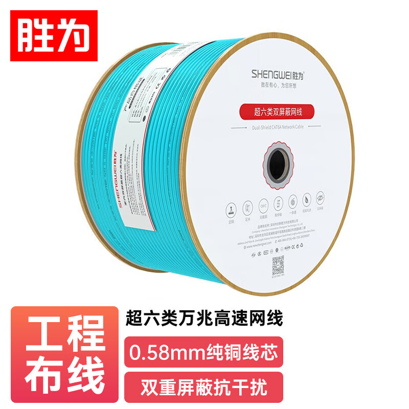 超六類萬兆網(wǎng)線 工程家裝雙屏蔽版 勝為0.58mm無氧銅CAT6A類網(wǎng)絡(luò)箱線低煙無鹵阻燃網(wǎng)線305米 CLC6A57C