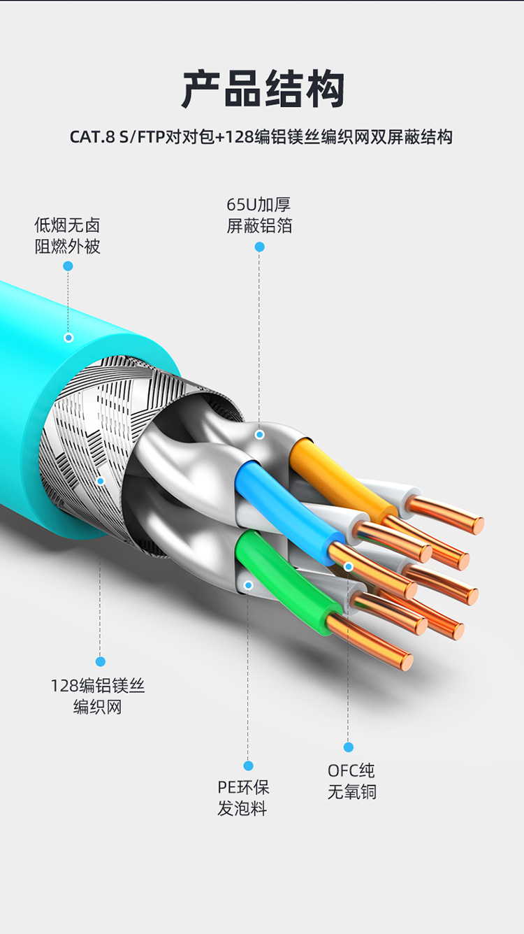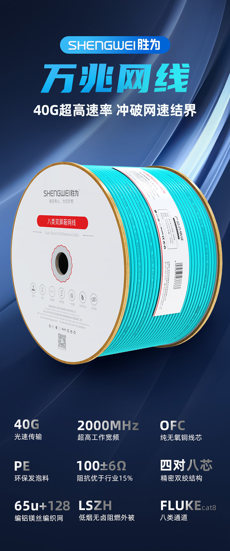 八類萬兆網(wǎng)線 雙屏蔽0.64mm無氧銅 勝為40G工程家裝 CAT8類網(wǎng)絡(luò)箱線低煙無鹵阻燃網(wǎng)線305米 CLC8064B