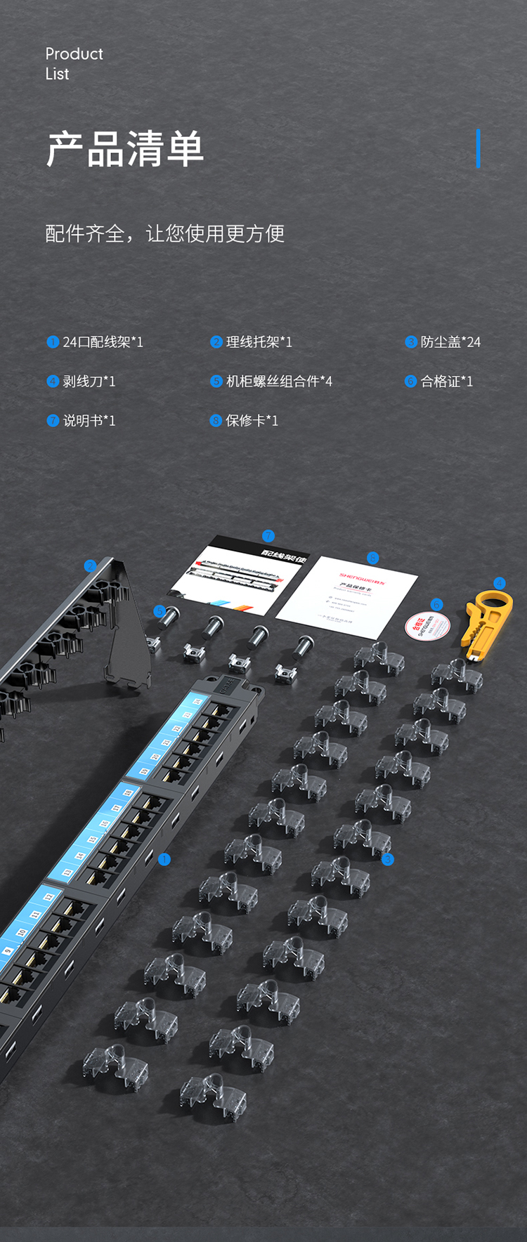 六類配線架24口 CAT6網(wǎng)線配線架 網(wǎng)絡(luò)級(jí)鍍金1U機(jī)架式機(jī)柜網(wǎng)絡(luò)跳線理線槽 CNDF624W