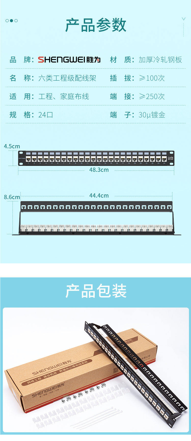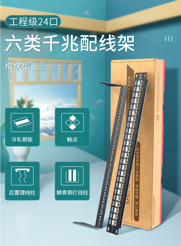 六類24口網(wǎng)絡(luò)配線架 千兆配線架 工程級30U鍍金版24口網(wǎng)絡(luò)配線架1U機(jī)架式 NDF-624M