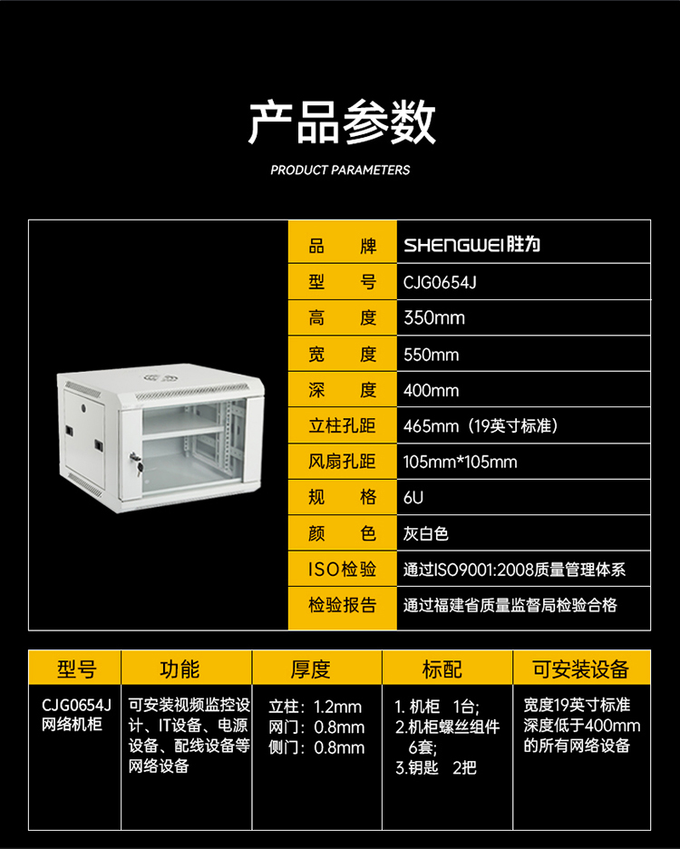 網絡機柜6U 墻柜壁掛弱電監(jiān)控機柜交換機小機柜 19英寸標準加厚網絡服務器機柜CJG0654J